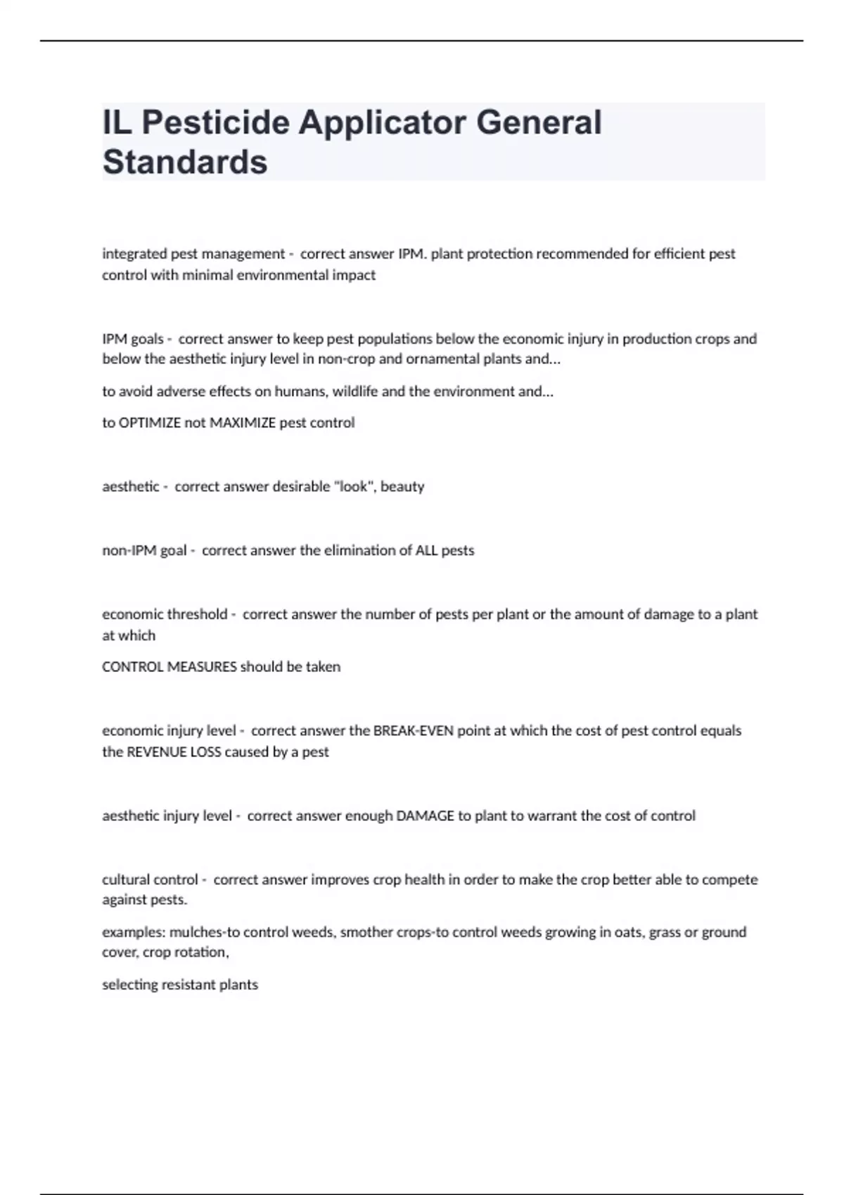 IL Pesticide Applicator General Standards questions and answers certified 2024