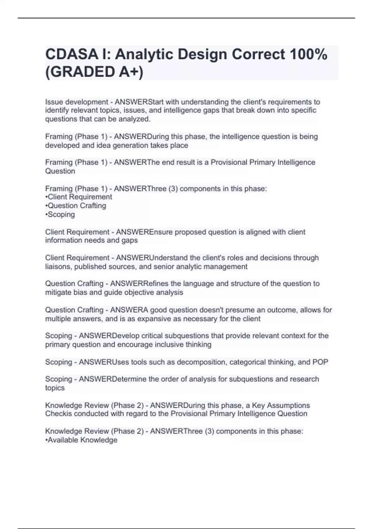 CDASA I: Analytic Design Correct 100%(GRADED A+)