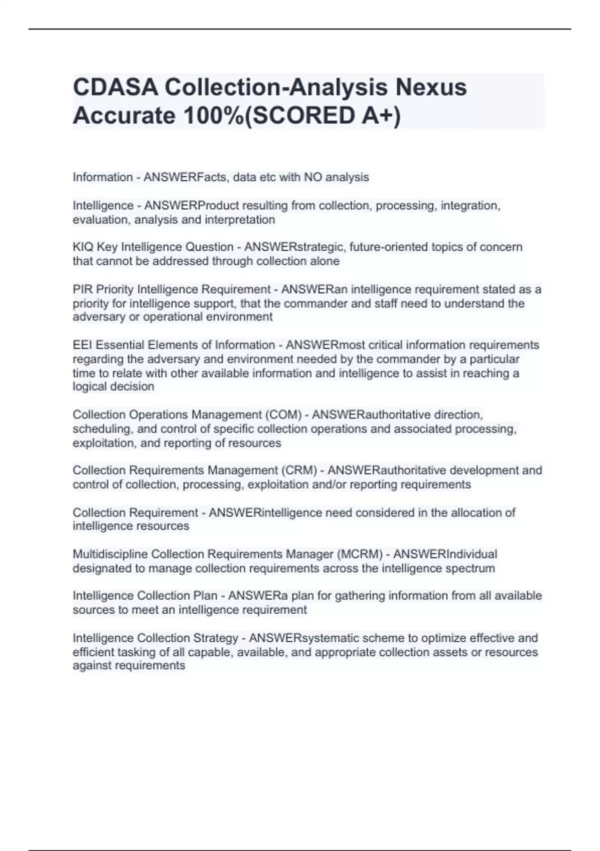 CDASA Collection-Analysis Nexus Accurate 100%(SCORED A+)