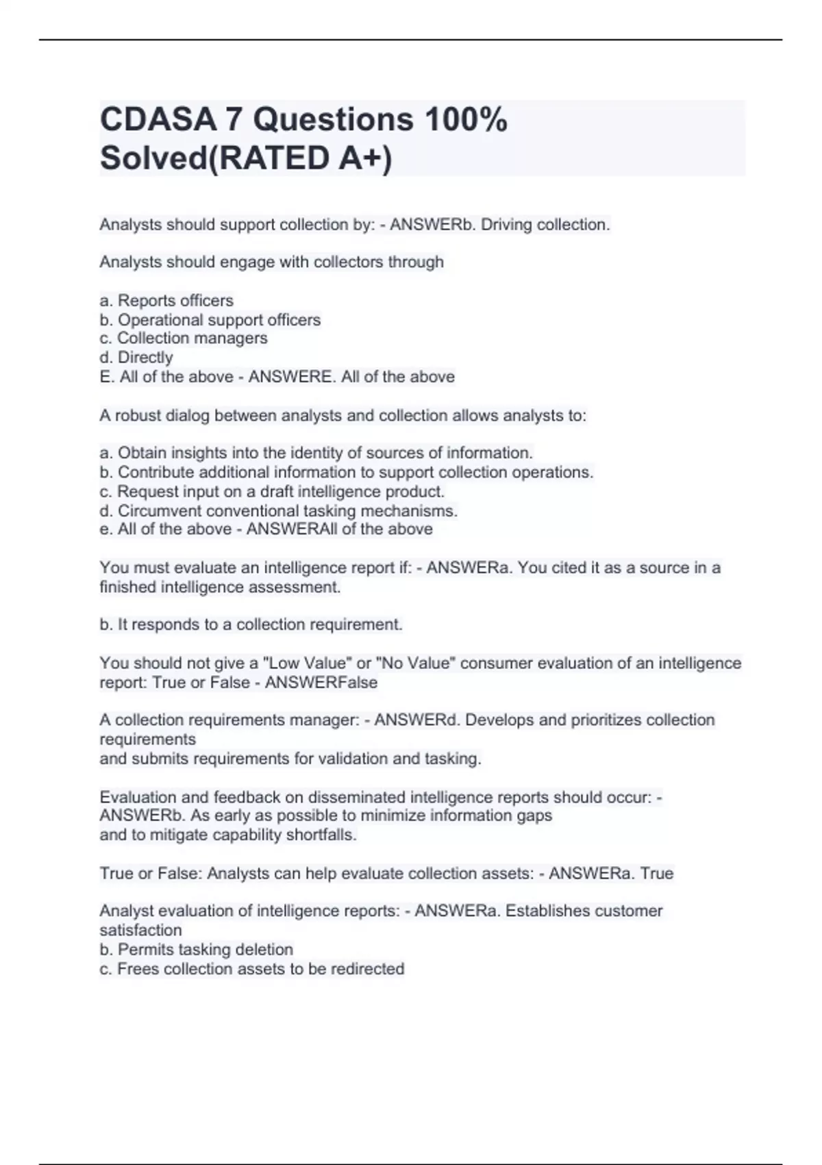 cdasa 7 questions 100 solvedrated a