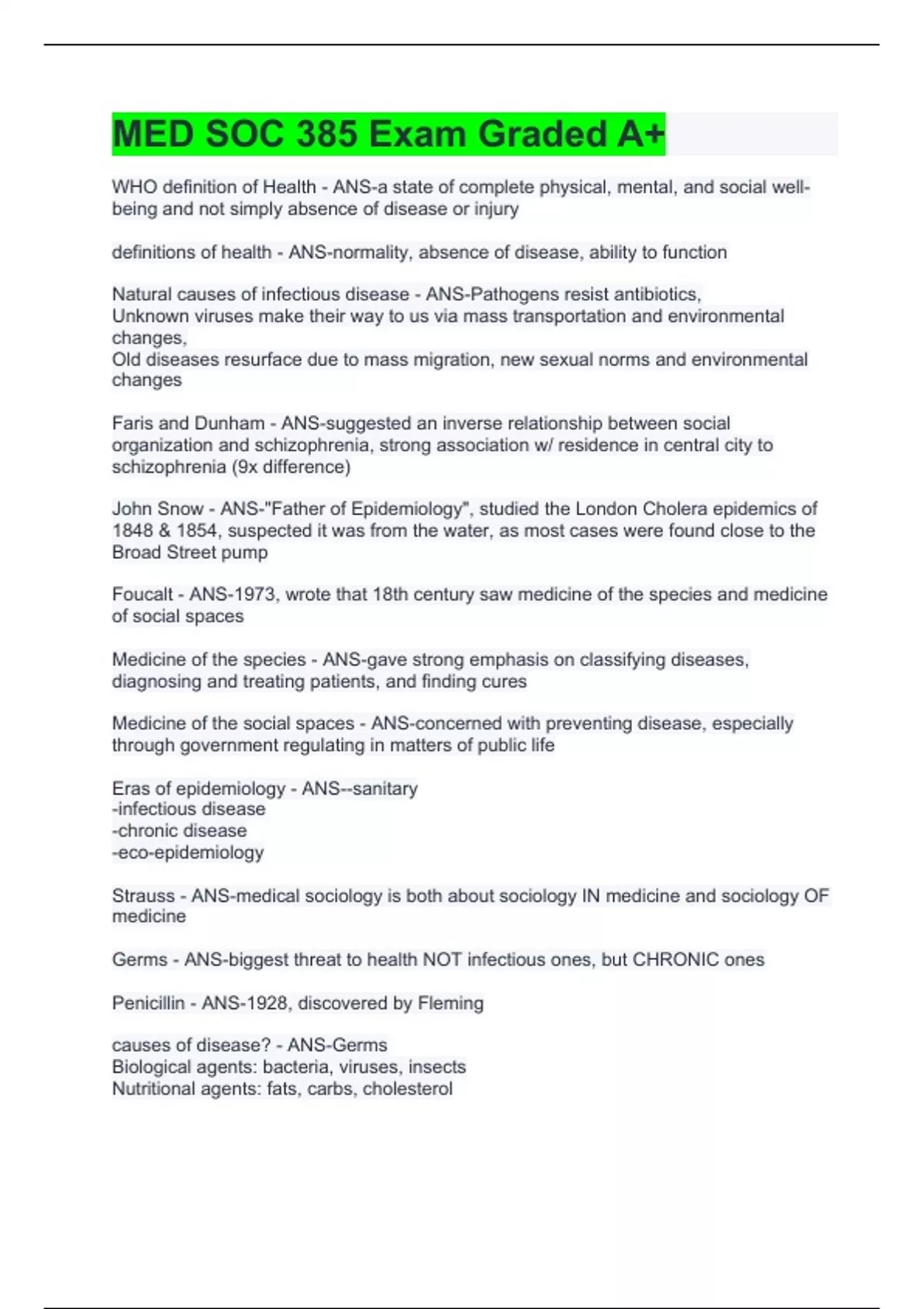 MED SOC 385 Exam Graded A+
