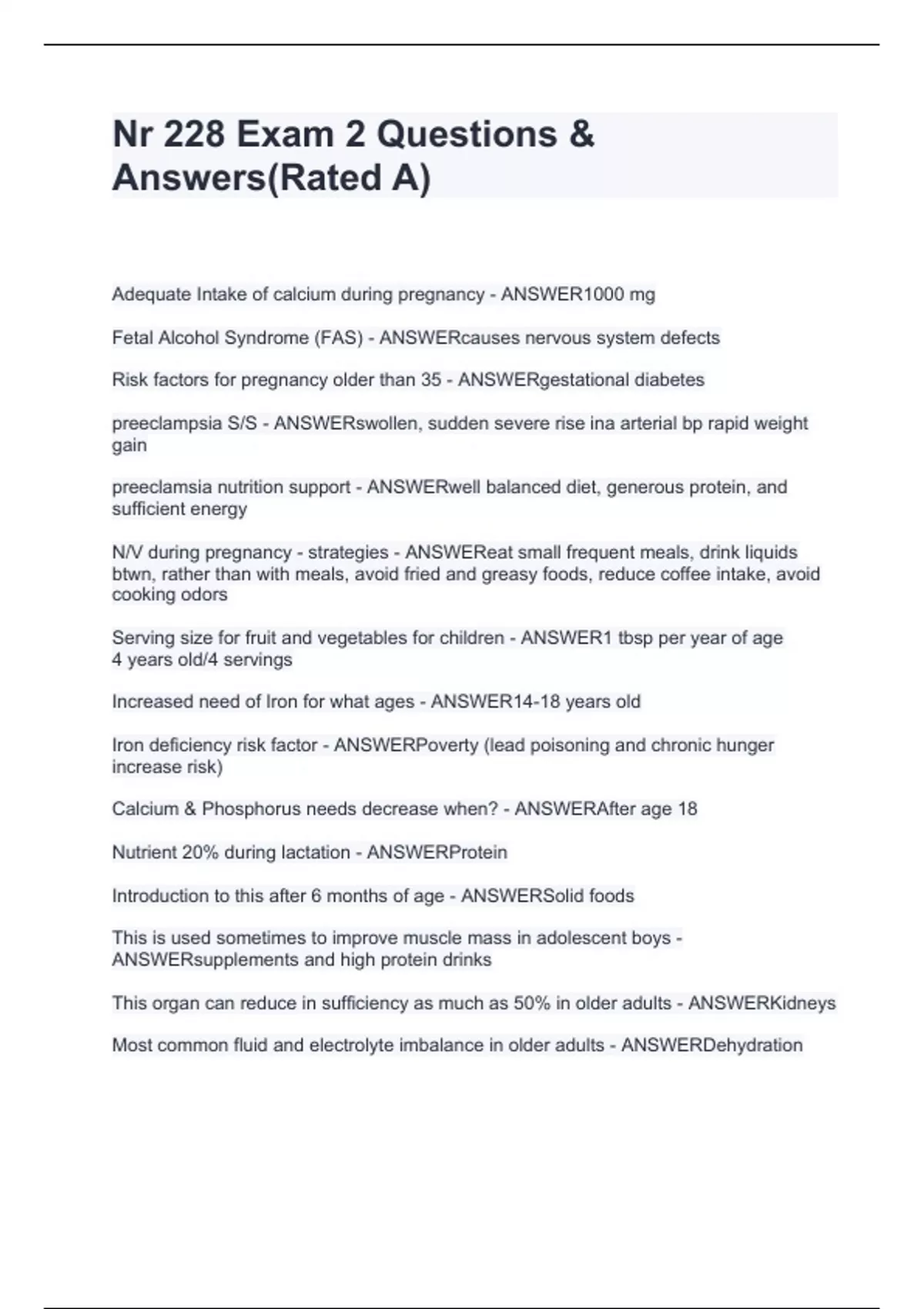 nr 228 exam 2 questions answersrated a