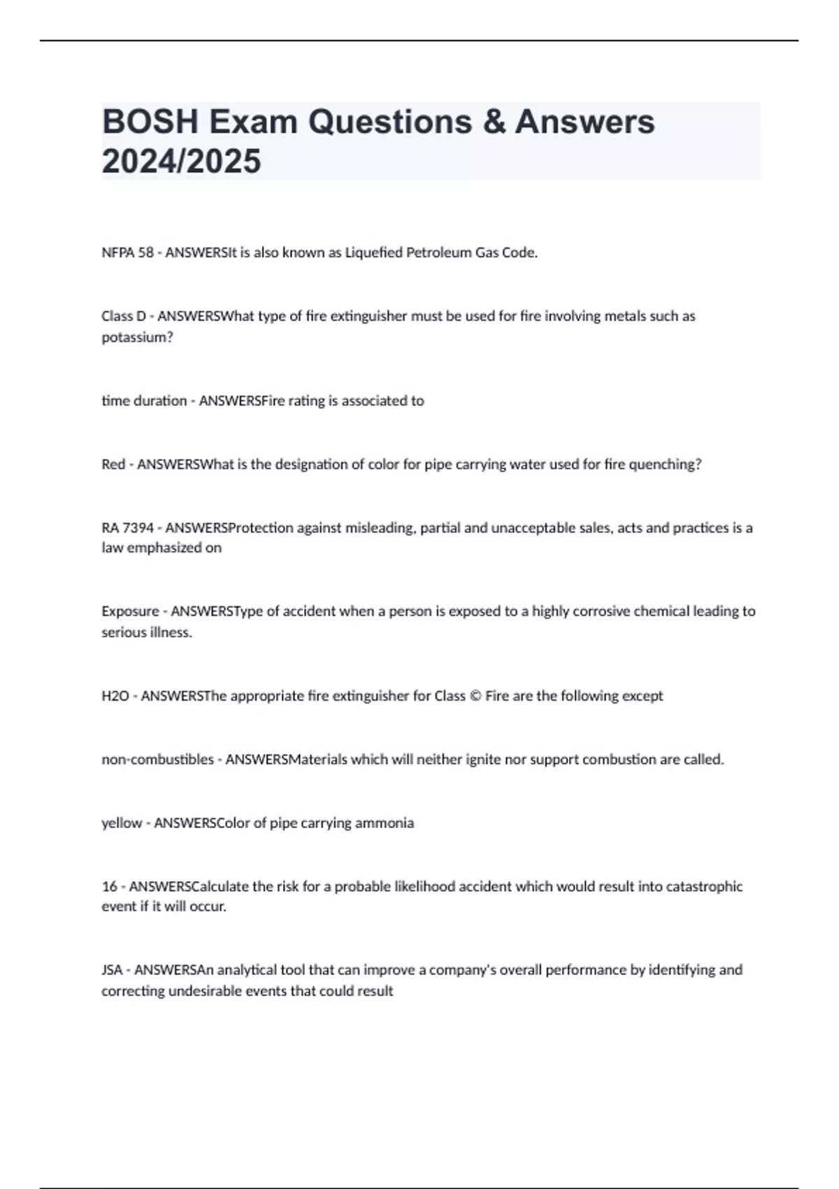 BOSH Exam Questions & Answers 2024/2025