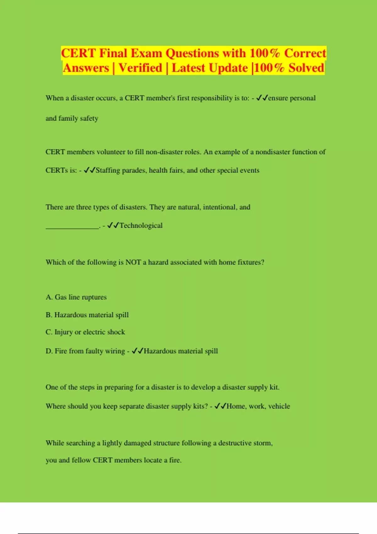 CERT Final Exam Questions with 100% Correct Answers | Verified | Latest Update |100% Solved