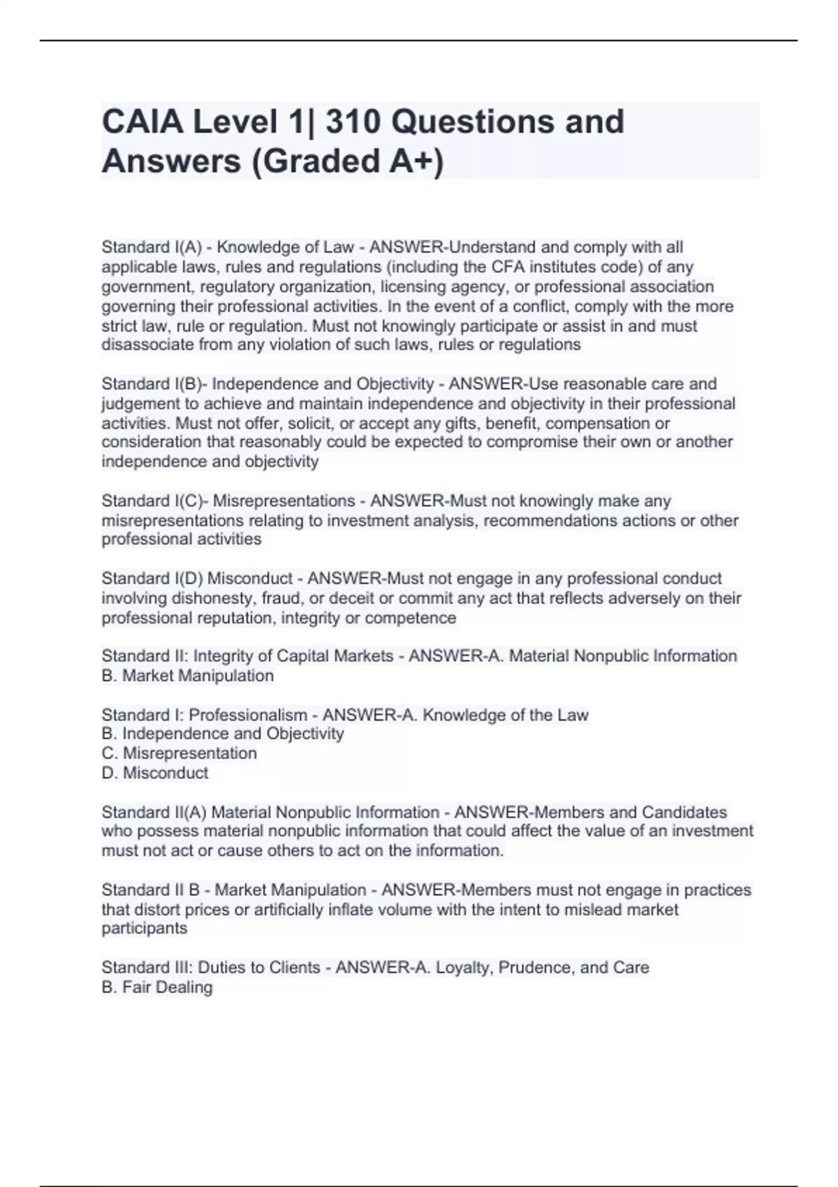 CAIA Level 1| 310 Questions and Answers (Graded A+)