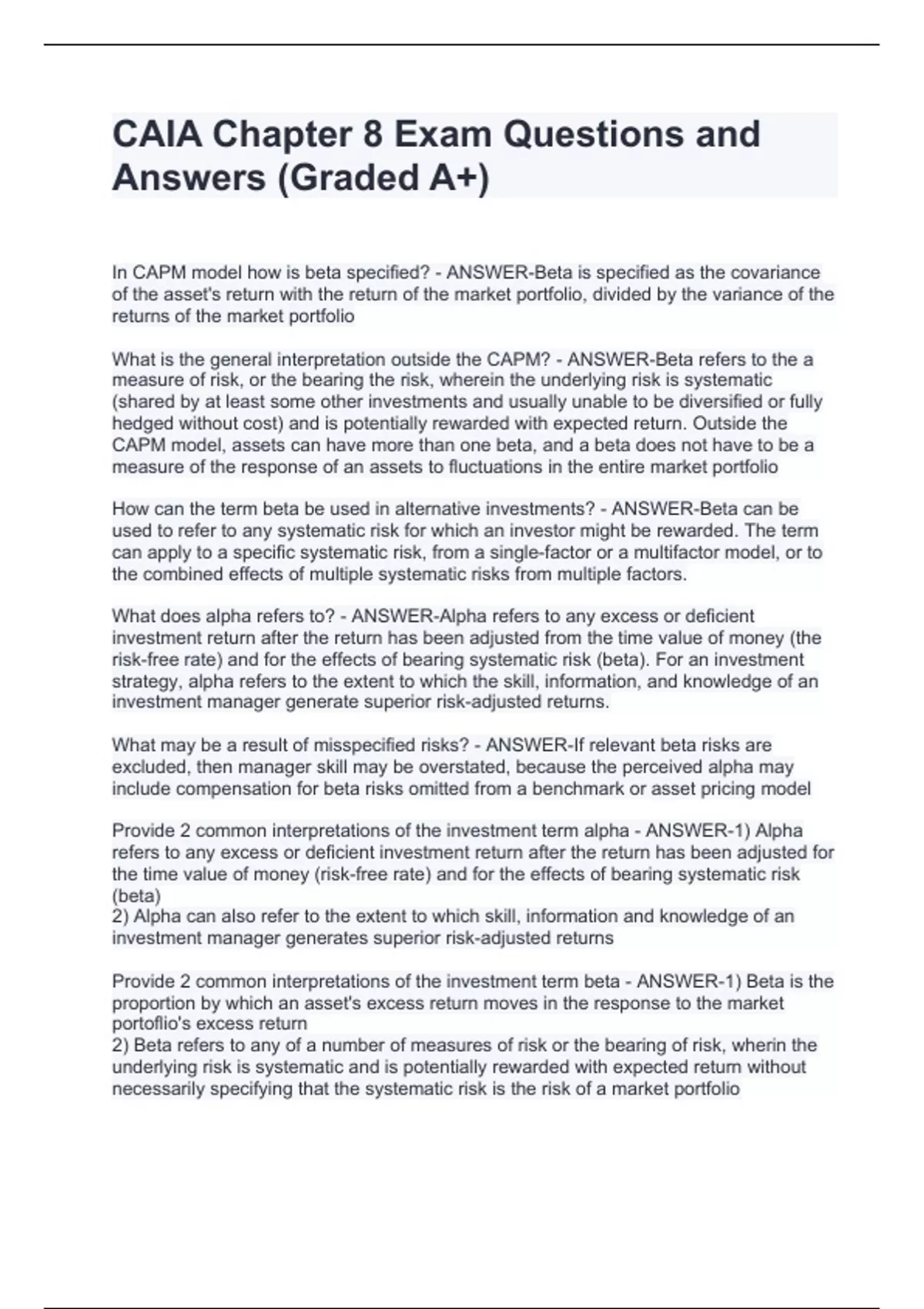 CAIA Chapter 8 Exam Questions and Answers (Graded A+)