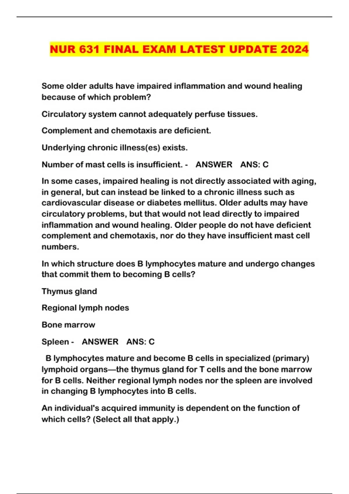 ALL NUR 631 / NUR631 PACKAGED EXAMS LATEST UPDATE 2024/2025