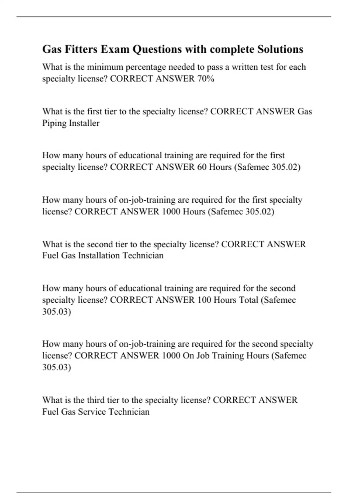Gas Fitters Exam Questions with complete Solutions