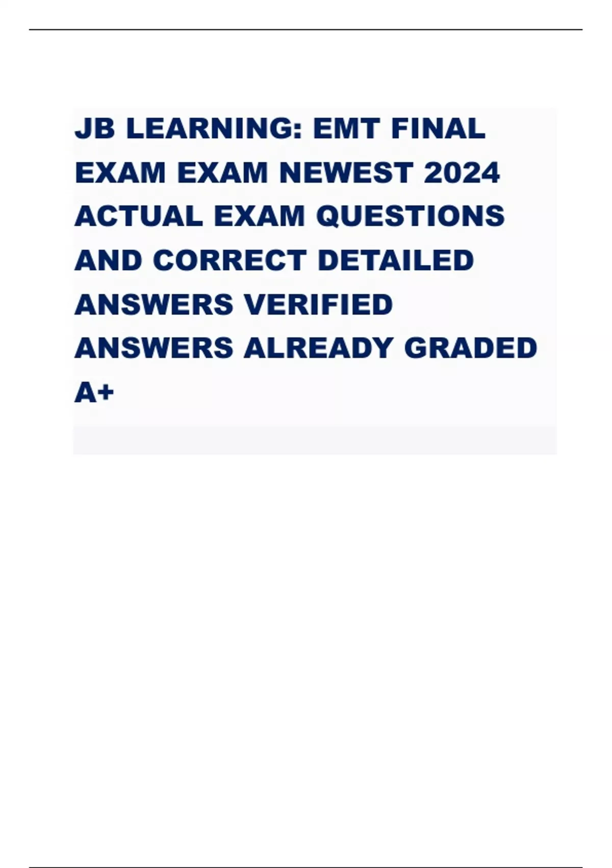 JB LEARNING: EMT FINAL EXAMEXAM NEWEST 2024 ACTUAL EXAM QUESTIONS AND CORRECT DETAILED ANSWERS VERIFIED ANSWERSALREADY GRADED A+