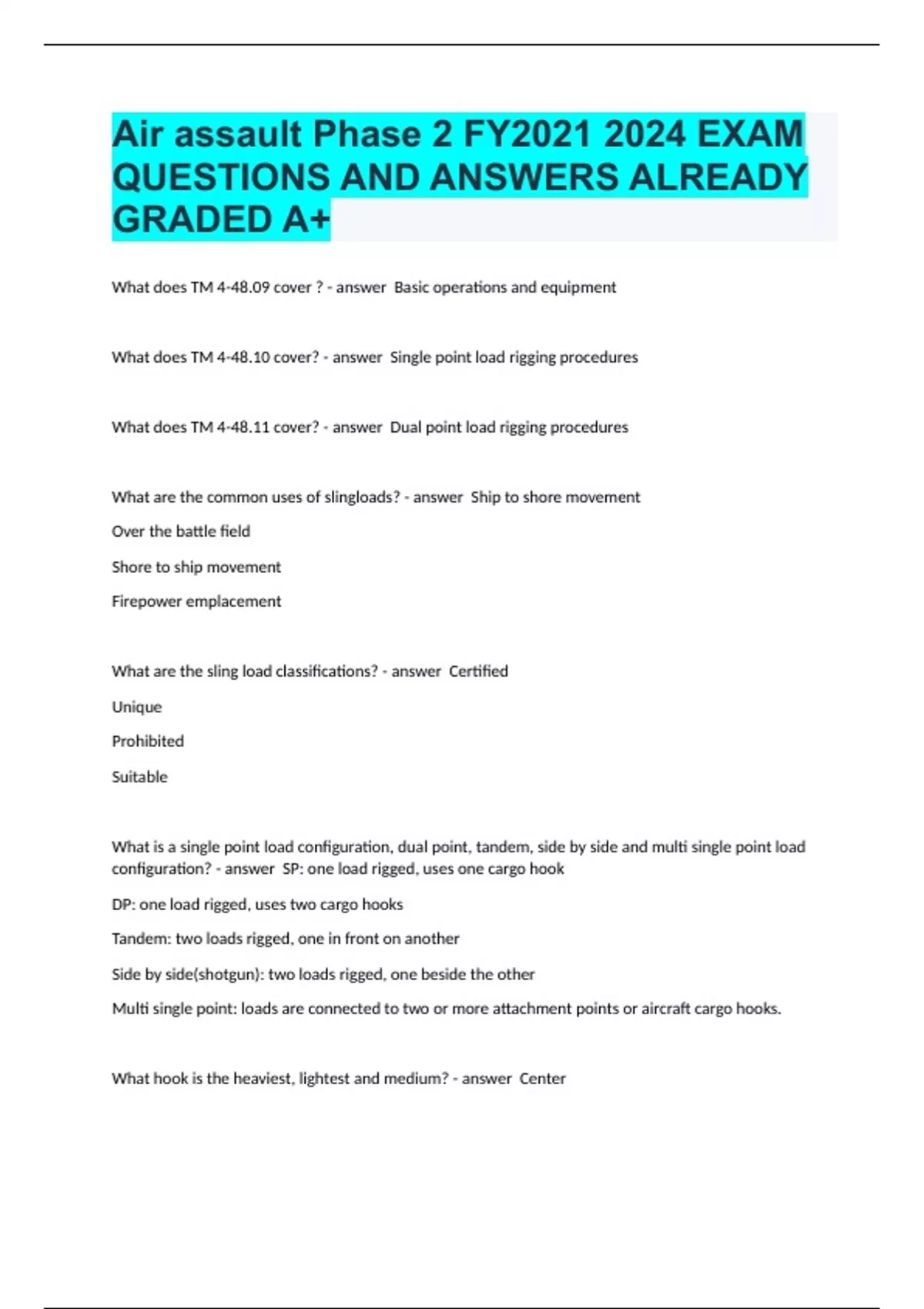 Air assault Phase 2 FY EXAM QUESTIONS AND ANSWERS ALREADY GRADED A+