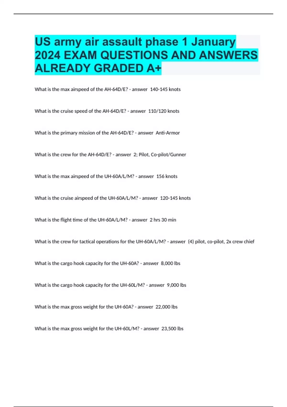 AIR ASSSULT EXAMS COMPILATION BUNDLE 2024/2025