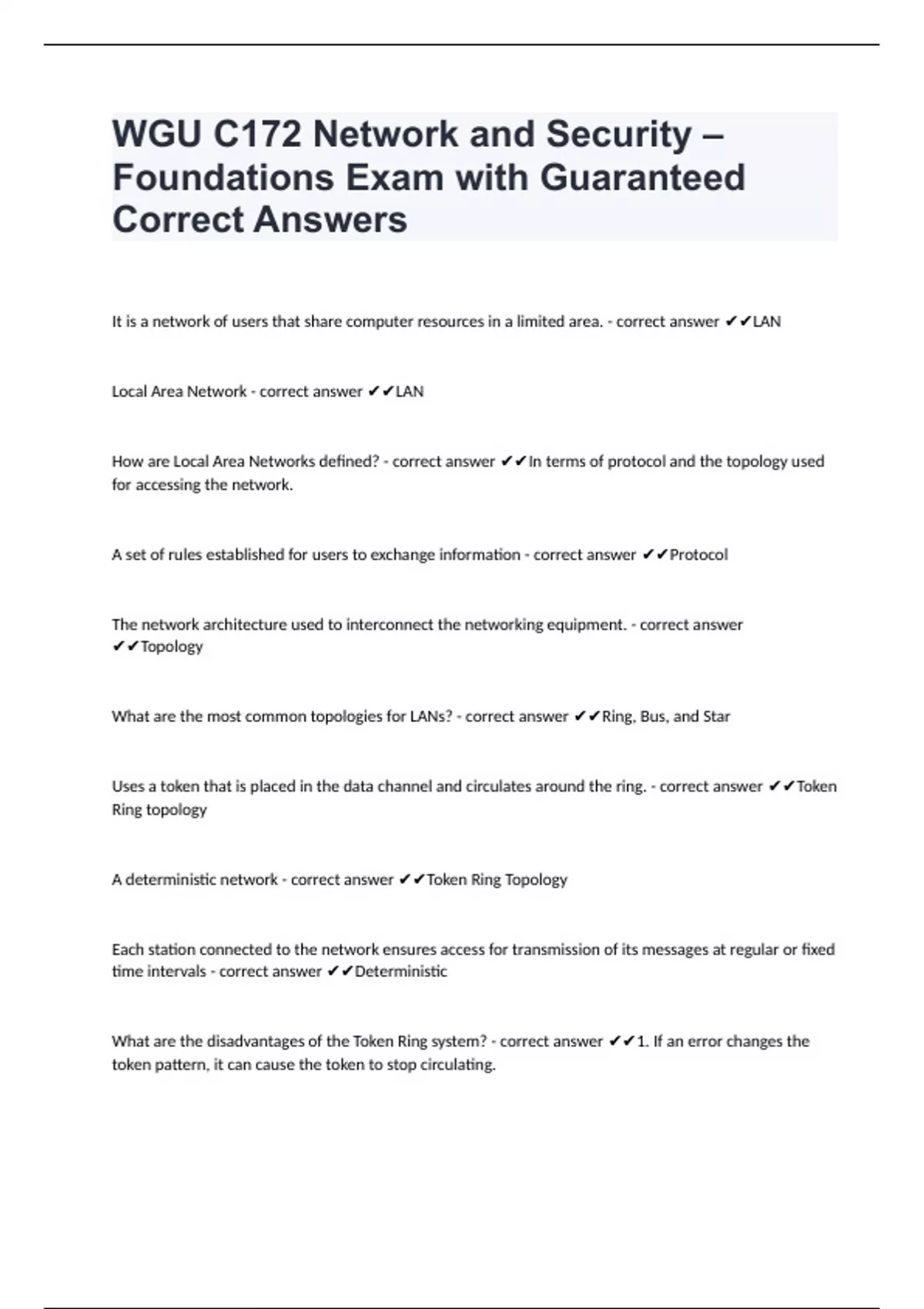 WGU C172 Network and Security – Foundations Exam with Guaranteed Correct Answers