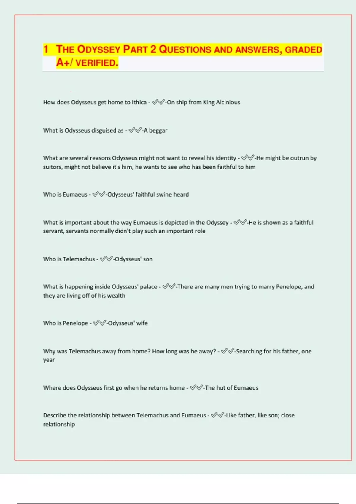 | LATEST EXAM UPDATES| 2024/25 |THE ODYSSEY PART 2 QUESTIONS AND ANSWERS, GRADED A+/ VERIFIED.