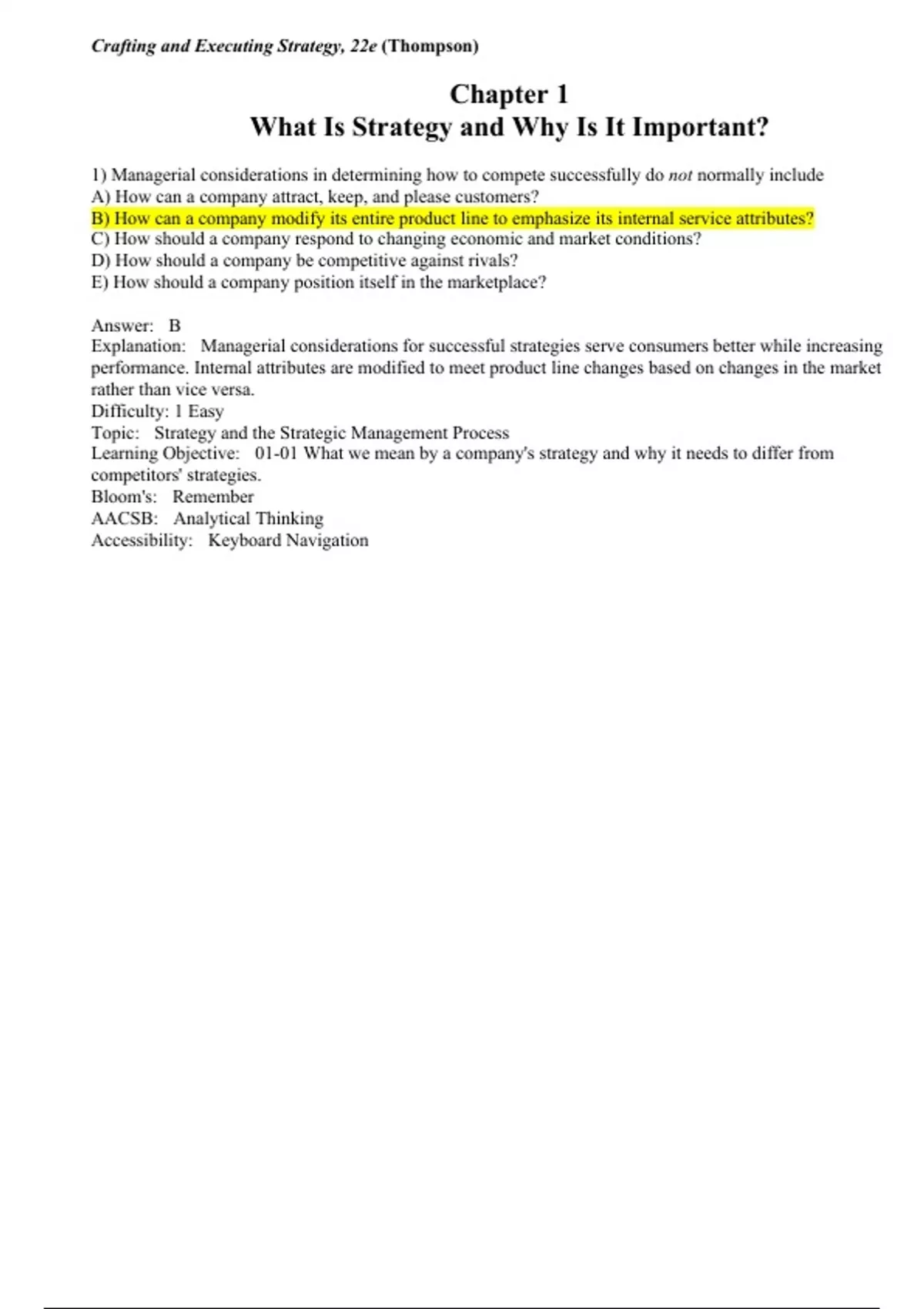 Learning Objective: 01-01 What we mean by a company's strategy and why it needs to differ from