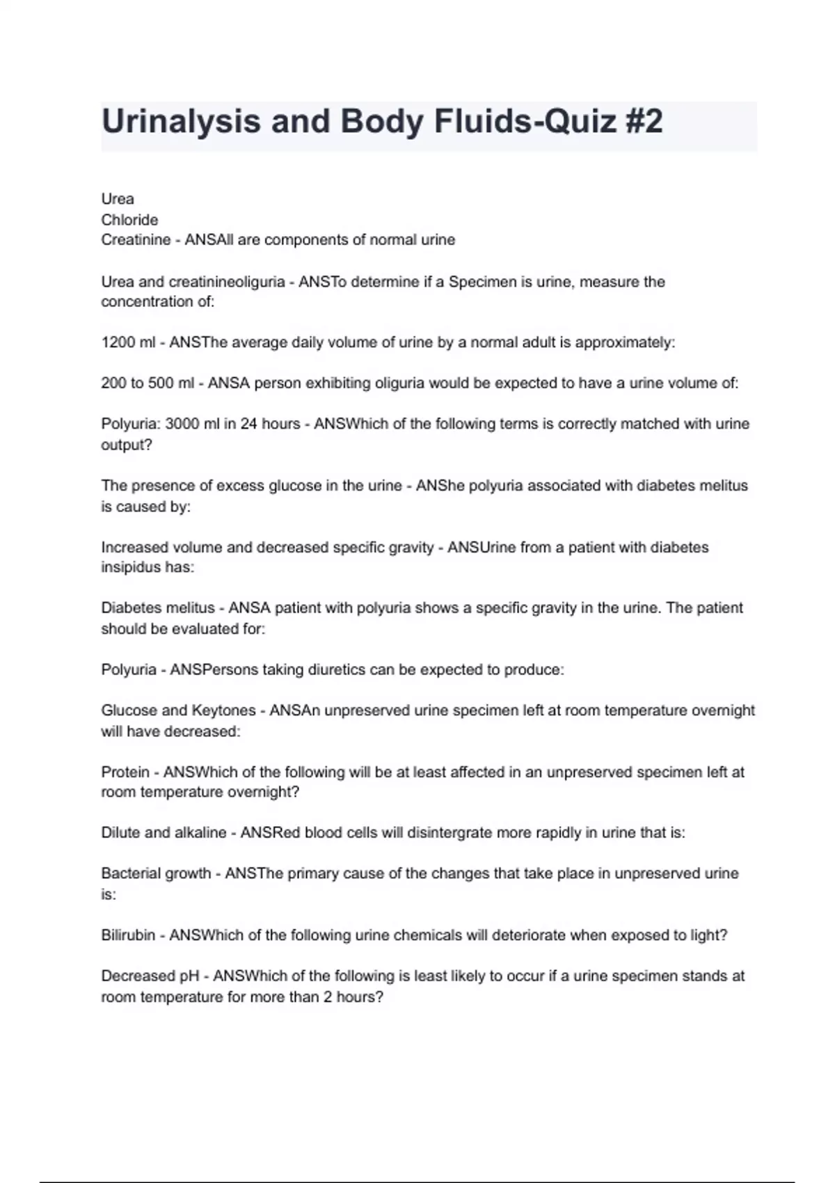 Urinalysis and Body Fluids-Quiz #2 (100% verified) 2024/2025