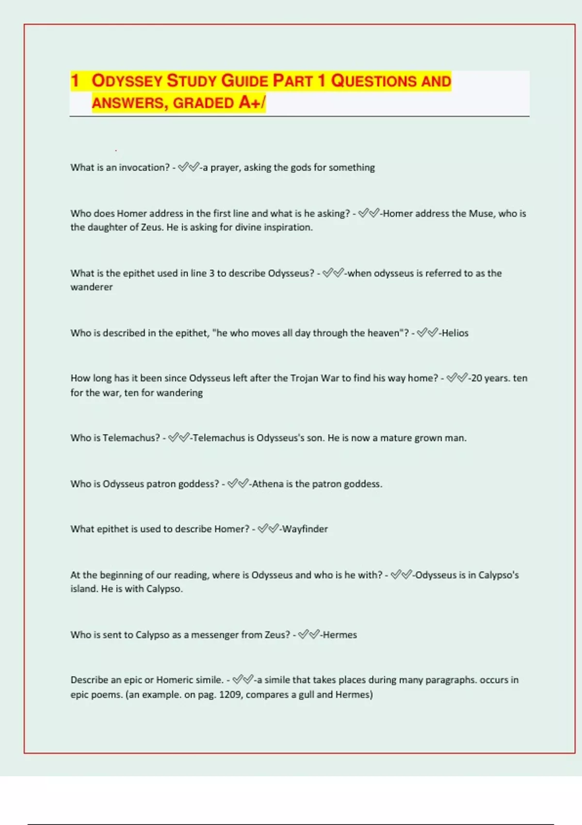 | LATEST EXAM UPDATES| 2024/25 |ODYSSEY STUDY GUIDE PART 1 QUESTIONS AND ANSWERS, GRADED A+/