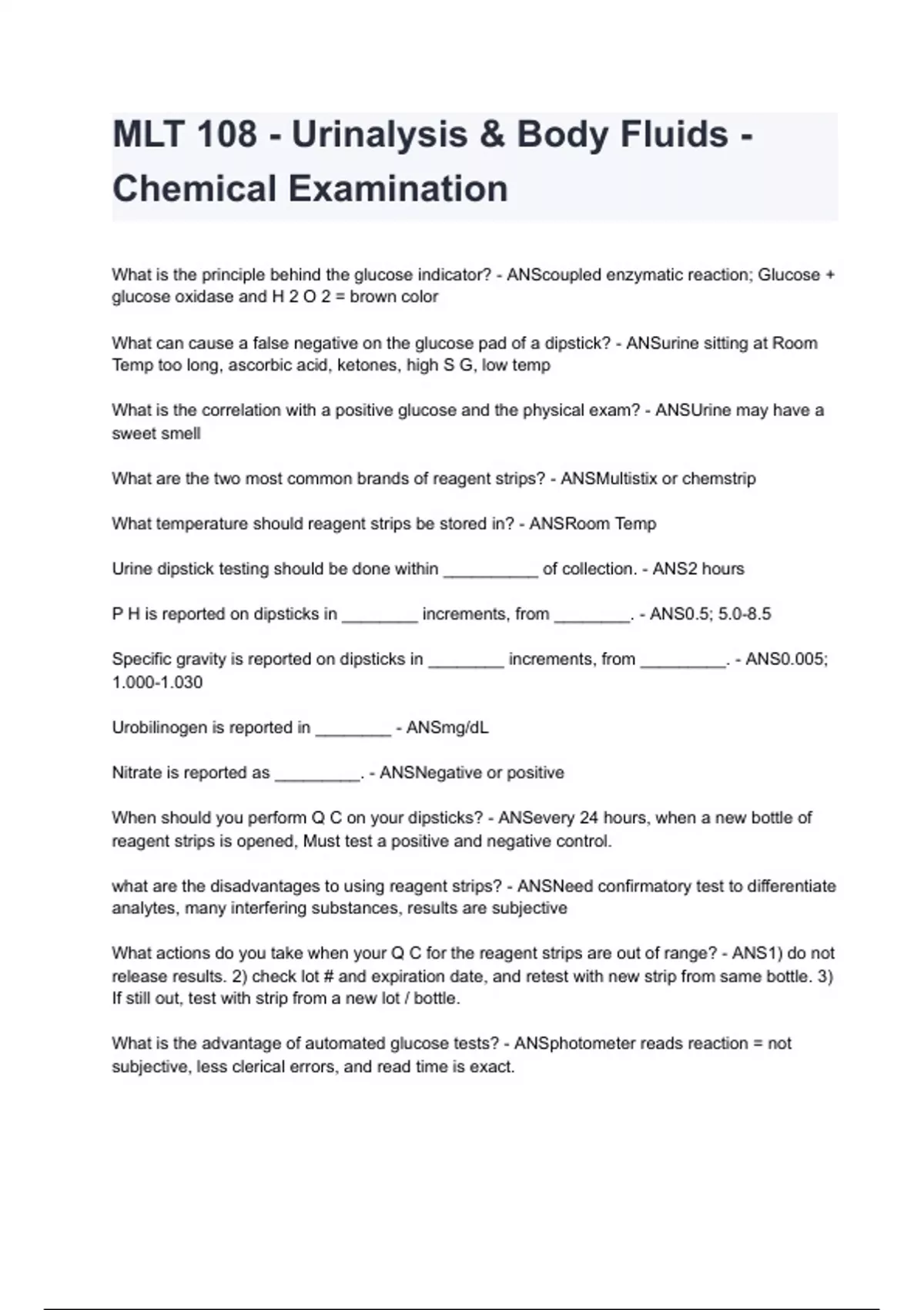 MLT 108 - Urinalysis & Body Fluids - Chemical Examination 2024/2025 (100% verified)