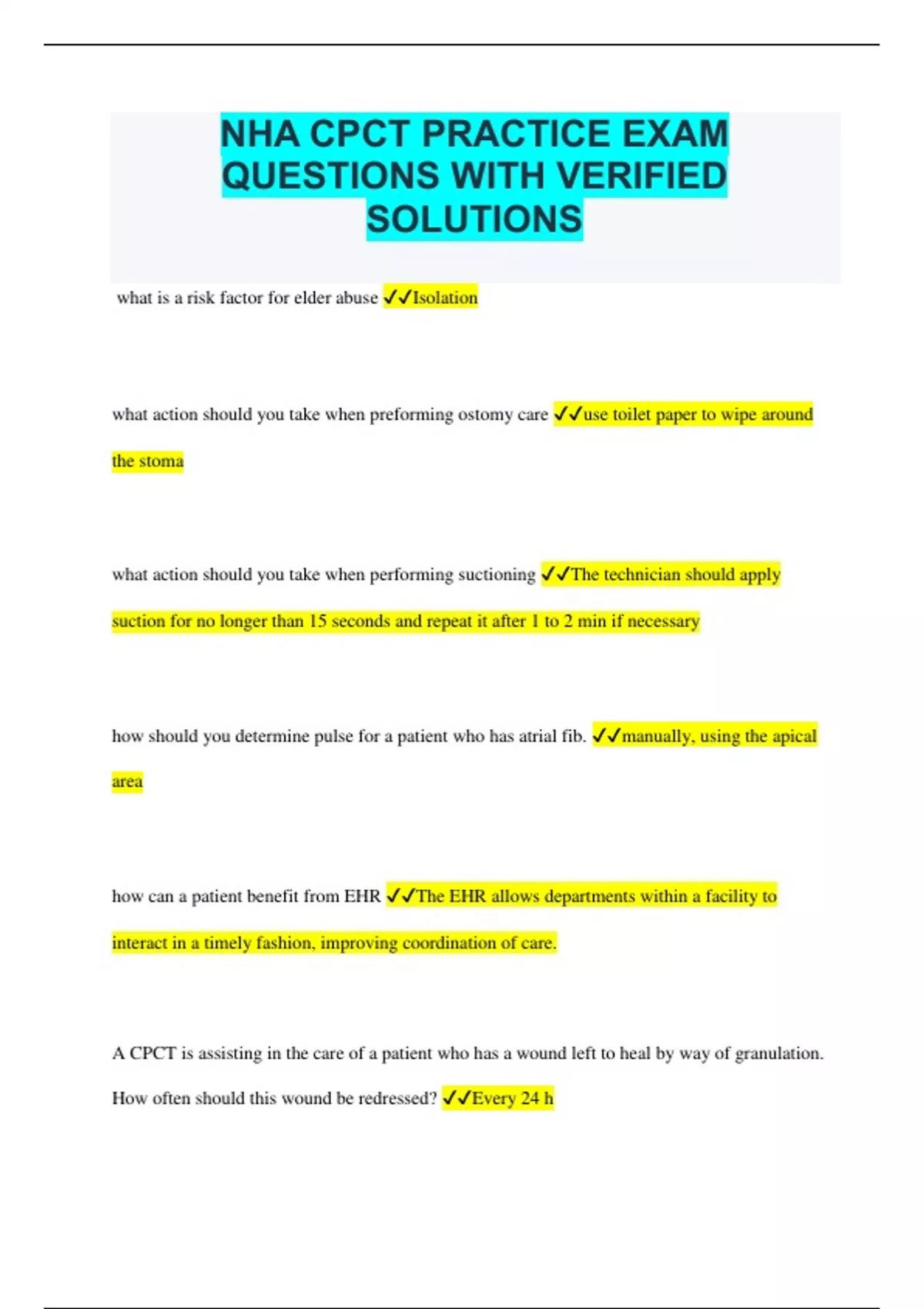 NHA CPCT PRACTICE EXAM QUESTIONS WITH VERIFIED SOLUTIONS