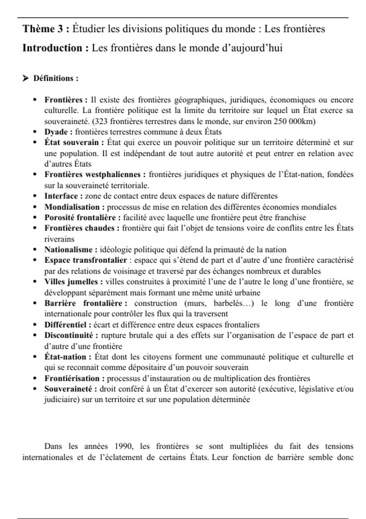 culturelle. La frontière politique est la limite du territoire sur lequel un État exerce sa