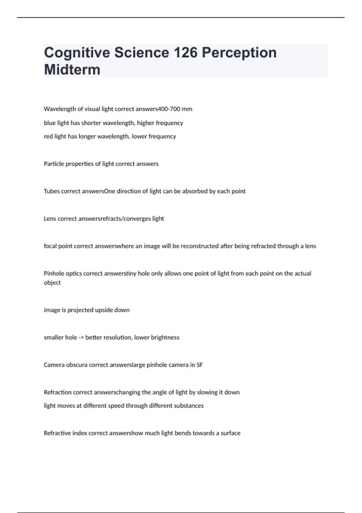 Cognitive Science 126 Perception Midterm exam 2024 with 100% correct answers