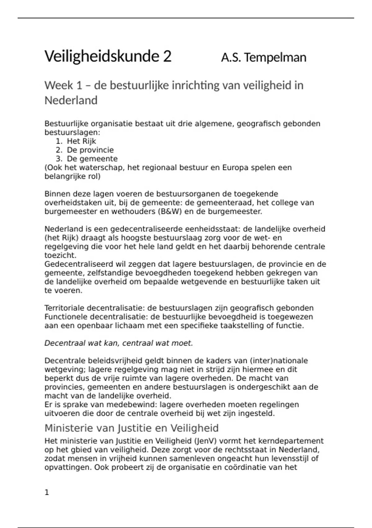 Week 1 – de bestuurlijke inrichting van veiligheid in