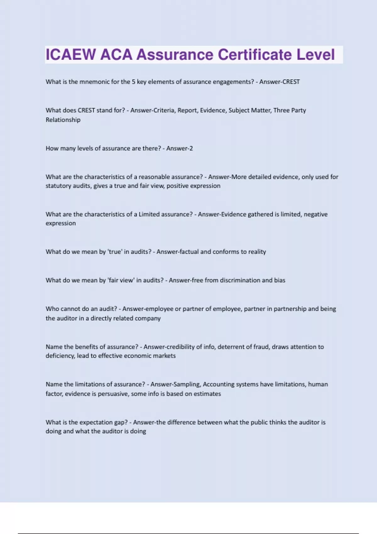 ICAEW ACA Assurance Certificate Level (Questions + Answers) Verified 100% Correct!!.