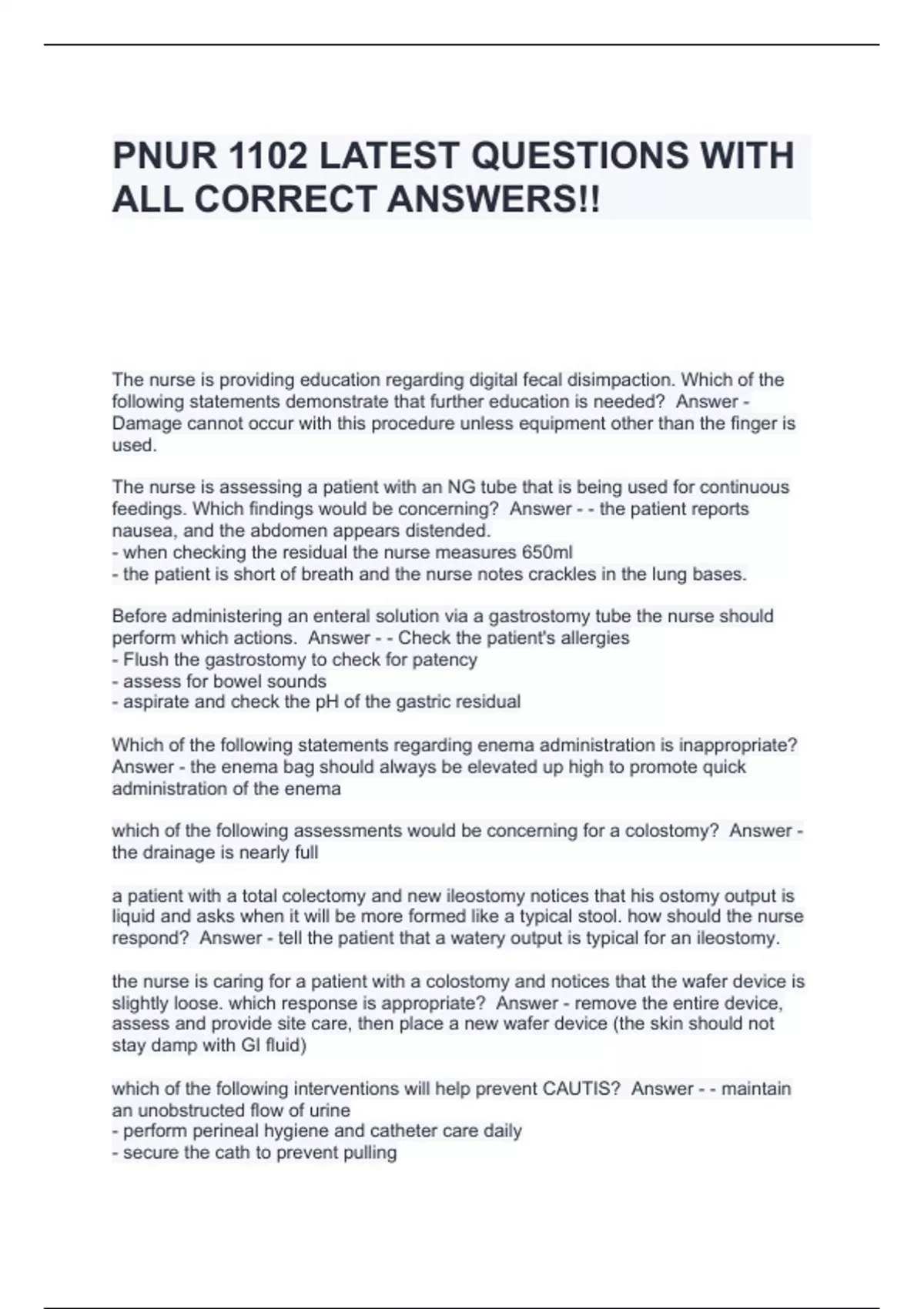 pnur 1102 latest questions with all correct answer