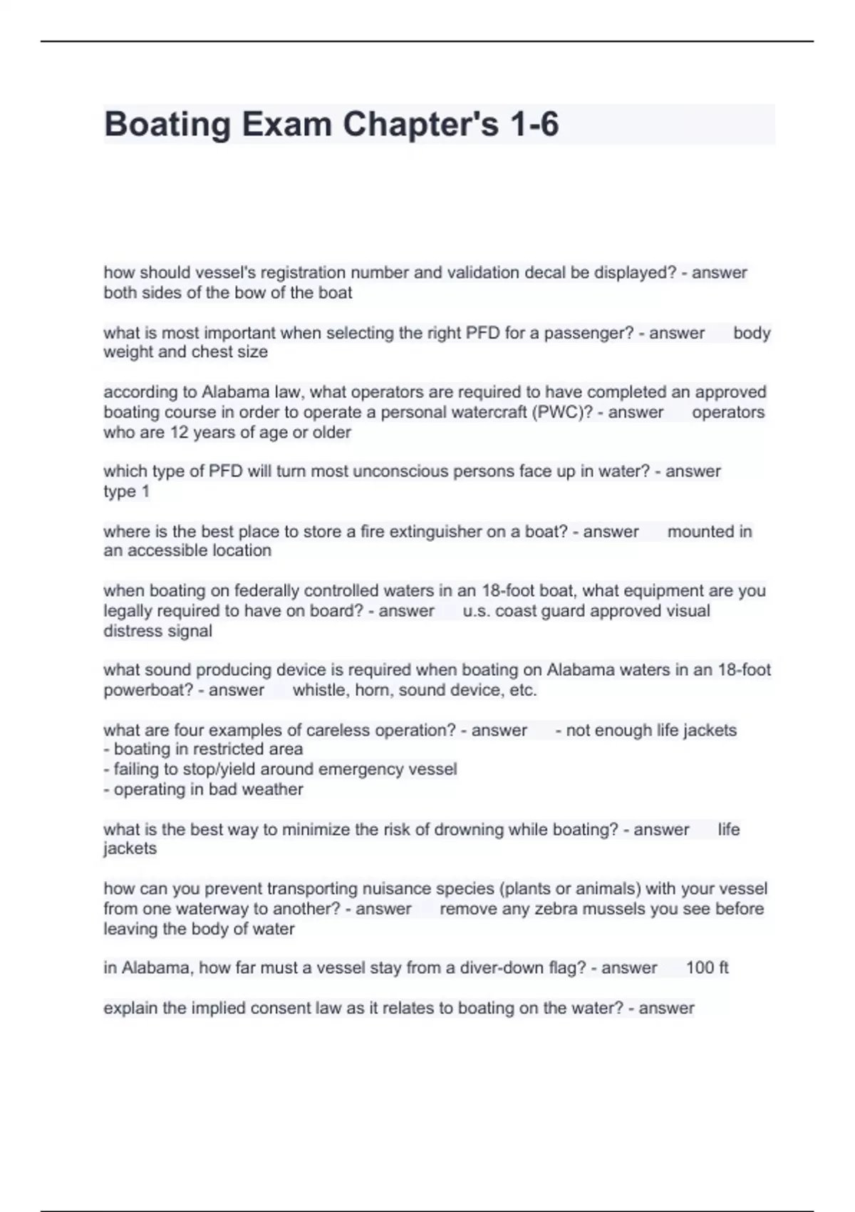 Boating Exam Chapter's 1-6 Questions and Answers Latest updated