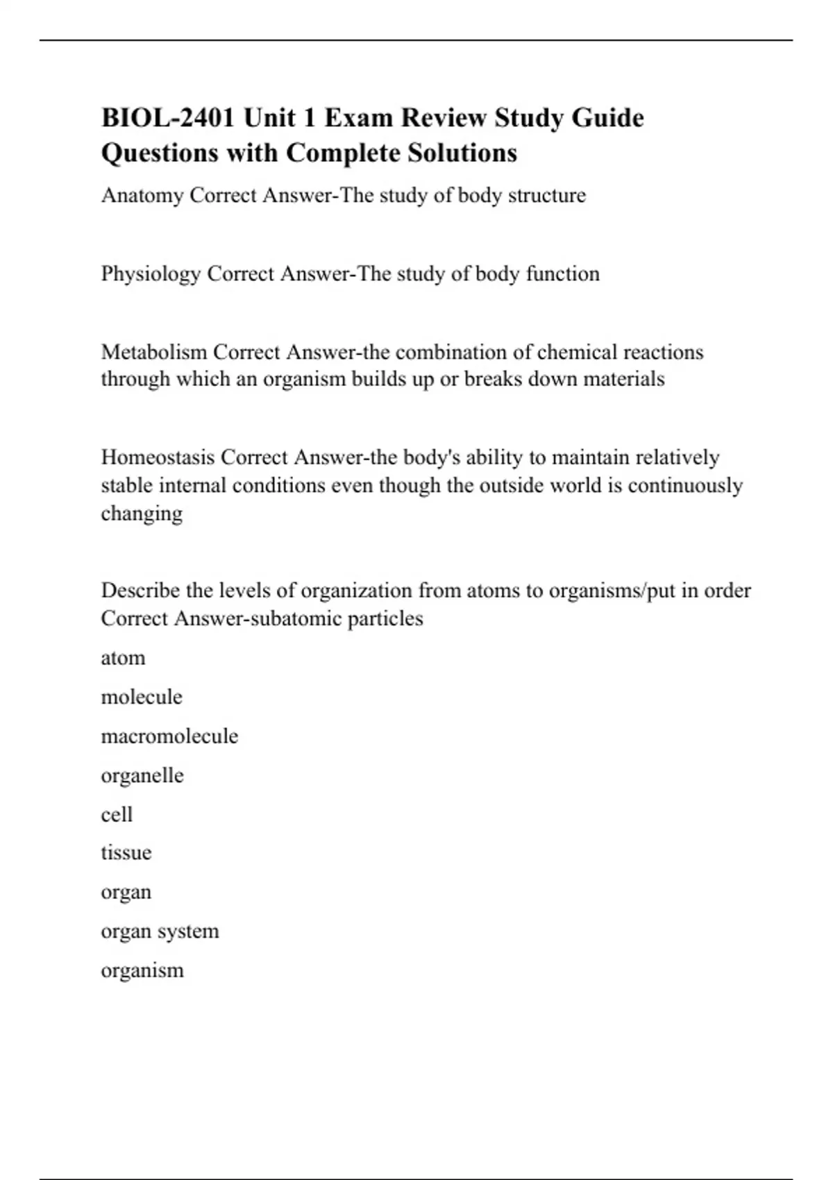 BIOL-2401 Unit 1 Exam Review Study Guide Questions with Complete Solutions