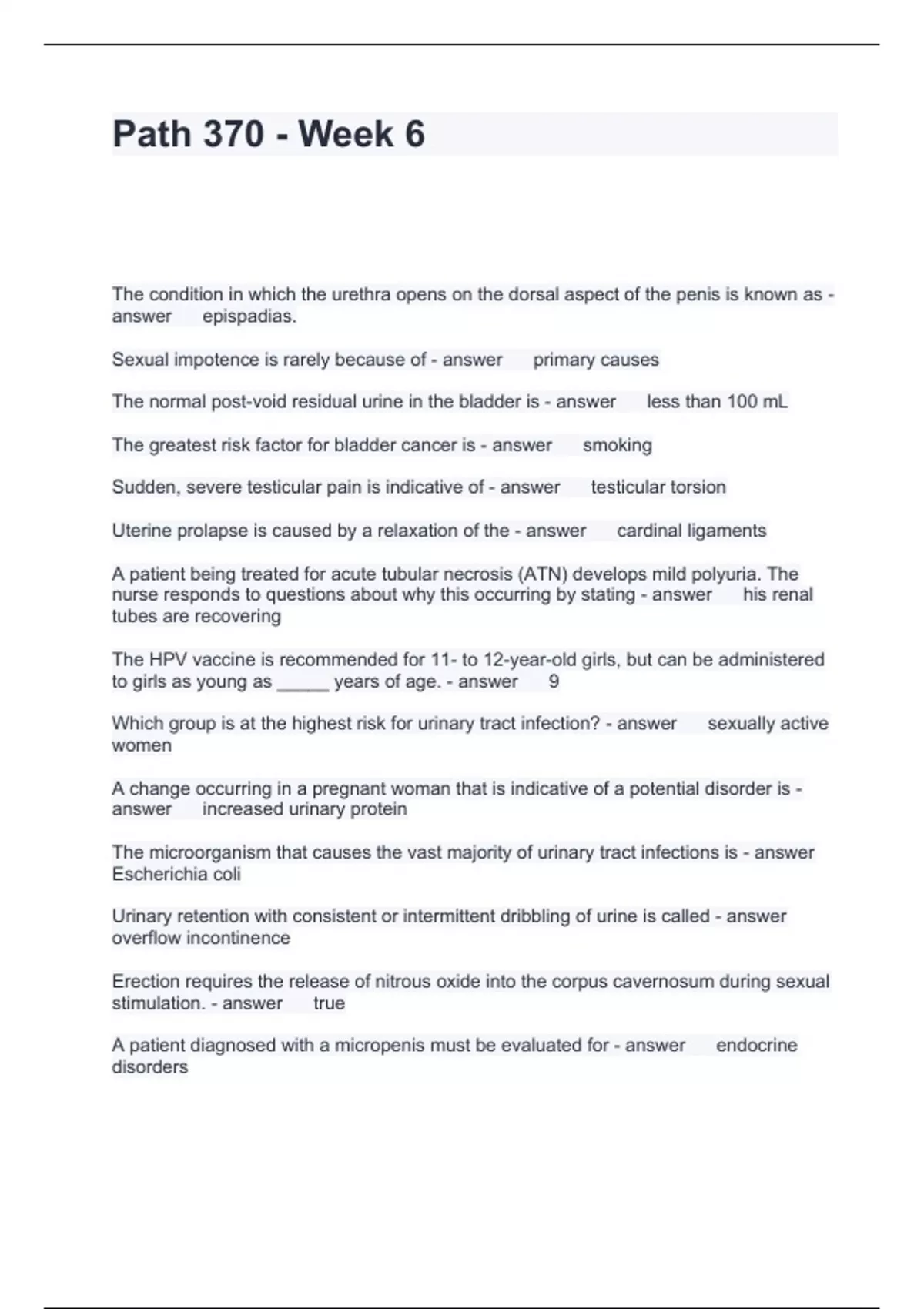Exam of 6 pages for the course Patho 370 at Patho 370 (Path 370 - Week 6)