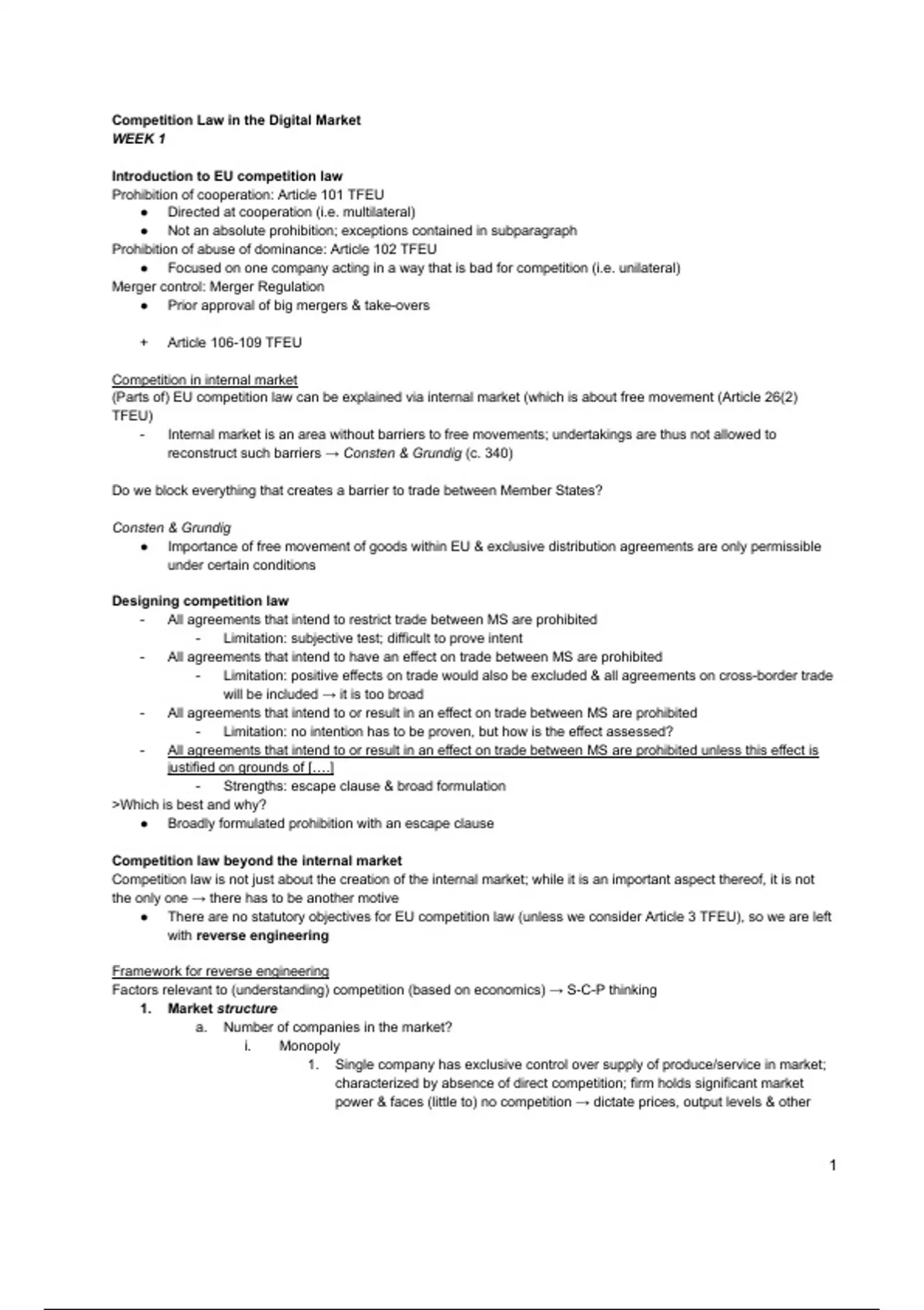 ● There are no statutory objectives for EU competition law (unless we consider Article 3 TFEU), so we are left
