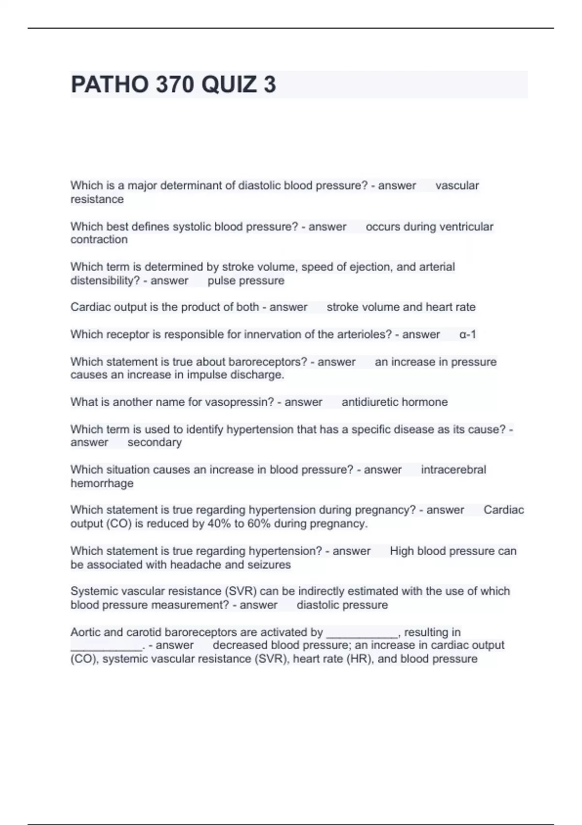PATHO 370 QUIZ 3 QUESTIONS WITH CORRECT ANSWERS GRADED A+