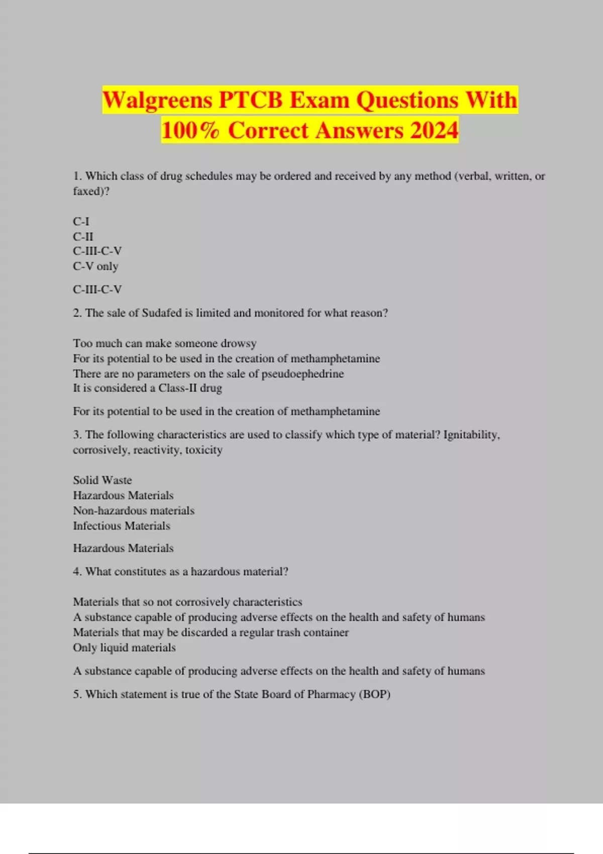 Walgreens PTCB Exam Questions With 100% Correct Answers