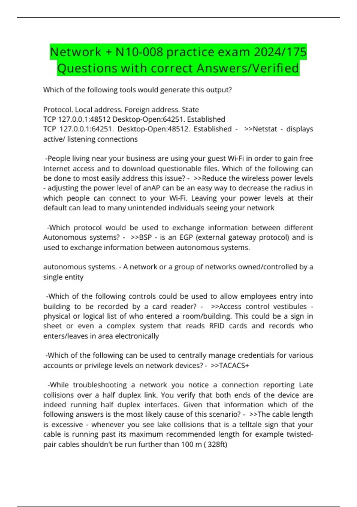 Network + N10-008 practice exam 2024/175