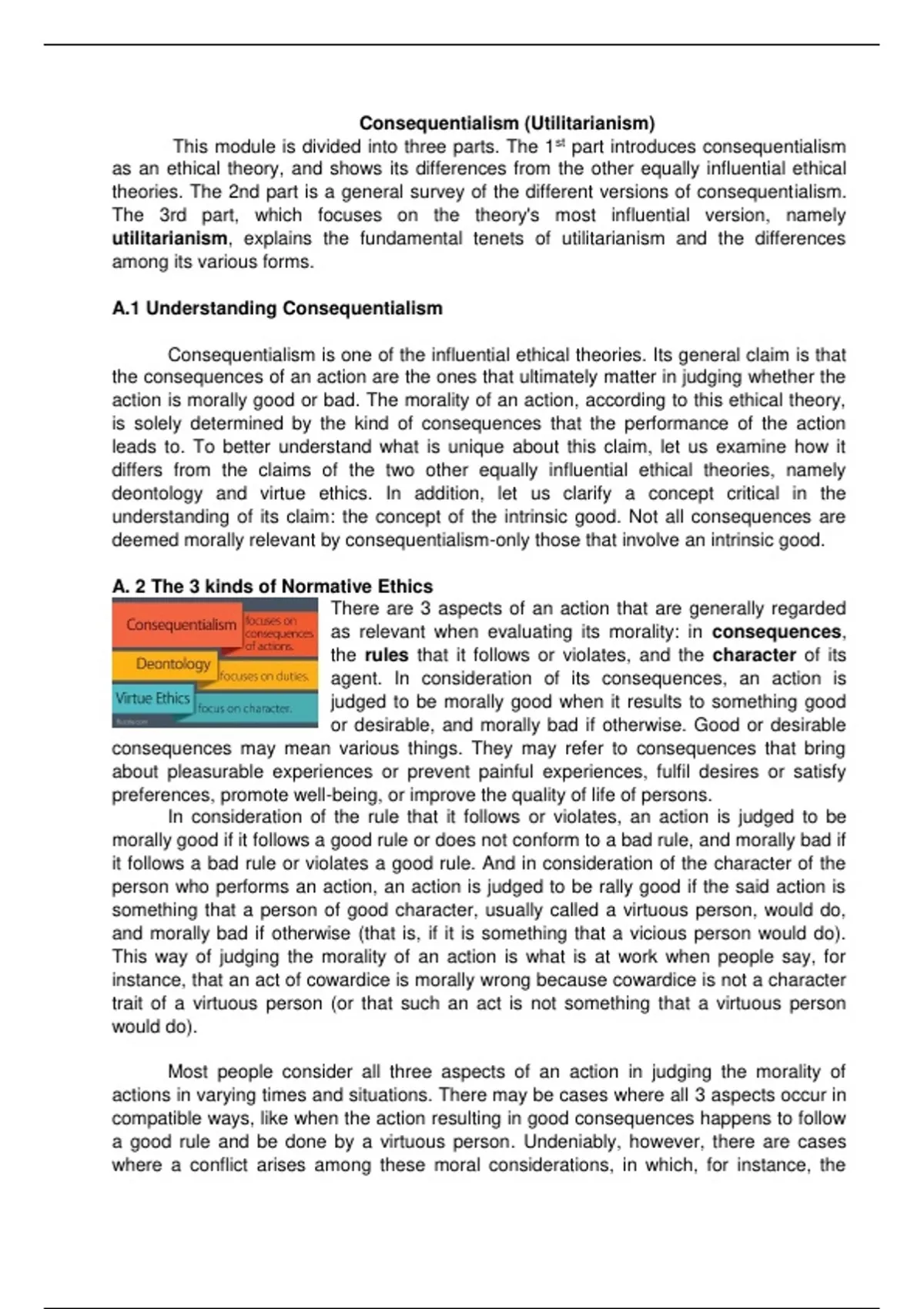 This module is divided into three parts. The 1st part introduces consequentialism