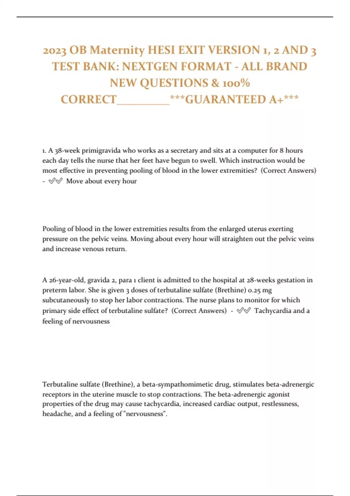 2023 OB Maternity HESI EXIT VERSION 1, 2 AND 3 TEST BANK: NEXTGEN FORMAT - ALL BRAND NEW QUESTIONS & 100% CORRECT_________***GUARANTEED A+***