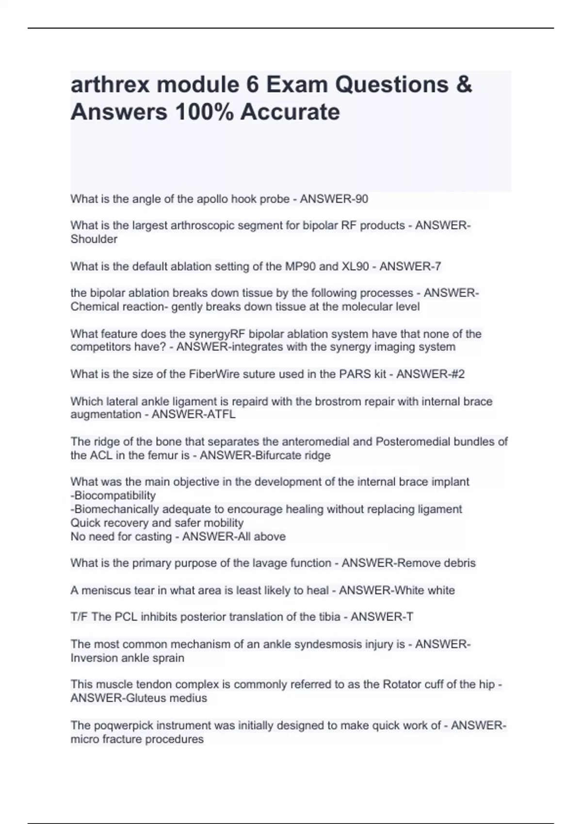 Answers 100% Accurate