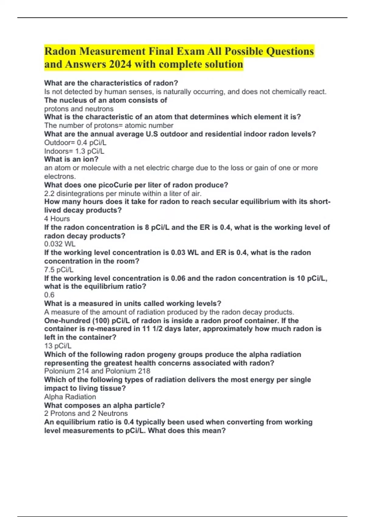 A measurement of 12.0 pCi/L is made in the home. If the equilibrium ratio is 4.0,