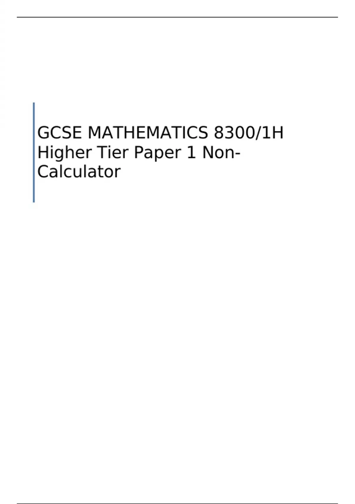 GCSE MATHEMATICS 8300/1H Higher Tier Paper 1 Non-Calculator