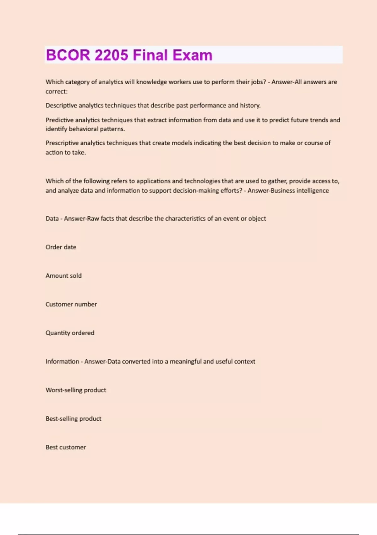 BCOR 2205 Final Exam (Questions + Answers) Verified 100% Correct!!