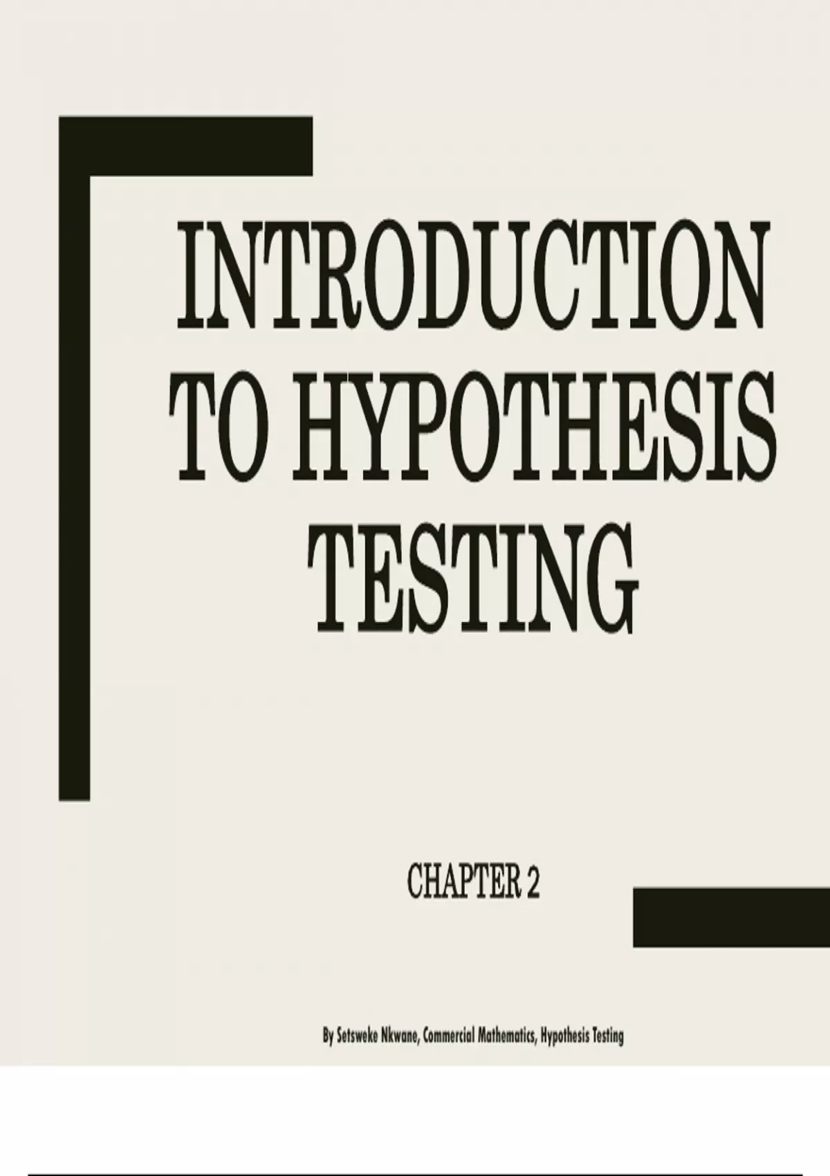 By Setsweke Nkwane, Commercial Mathematics, Hypothesis Testing