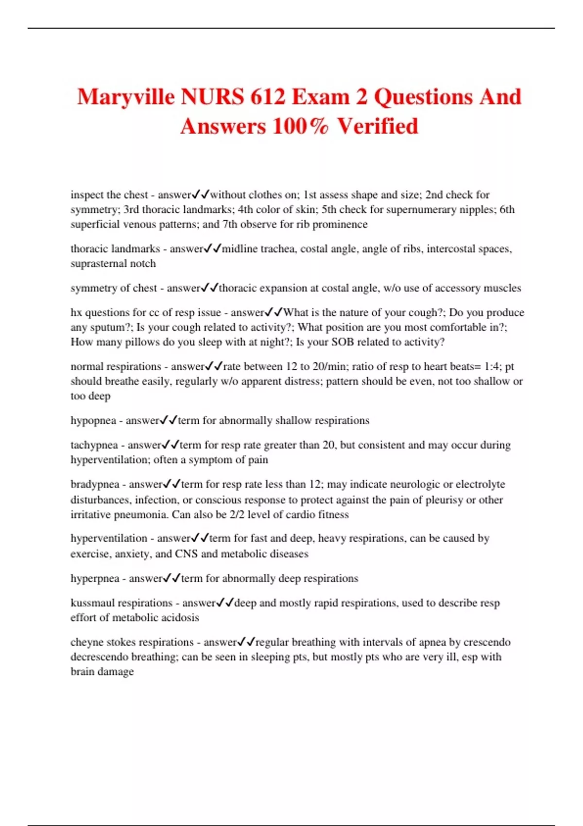 Maryville NURS 612 Exam 2 Questions And Answers 100% Verified