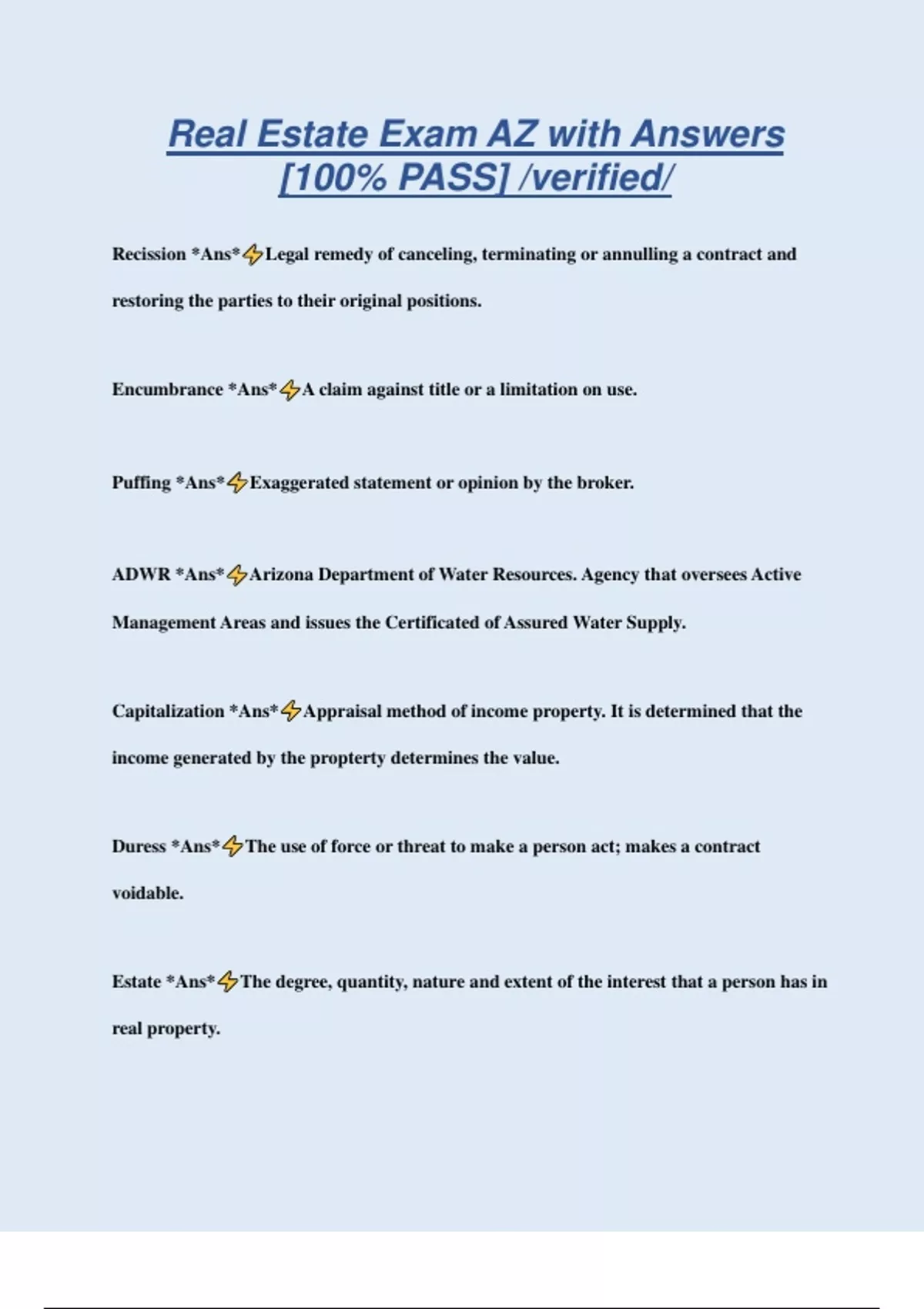 Real Estate Exam AZ with Answers [100% PASS] /verified/