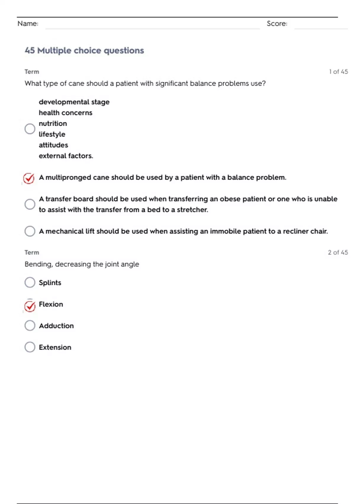 FPCC Exam 3 Highlights : Mobility questions with answers