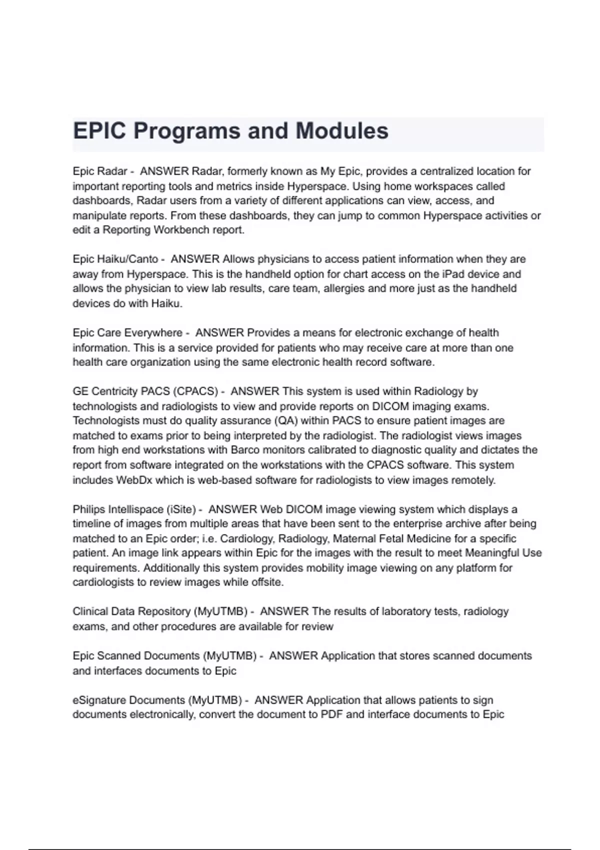 EPIC Programs and Modules Exam Questions and Answers Latest 2024( A+ GRADED 100% VERIFIED).