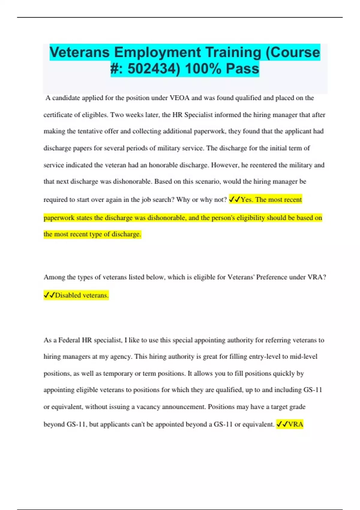 Veterans Employment Training (Course #: 502434) 100% Pass