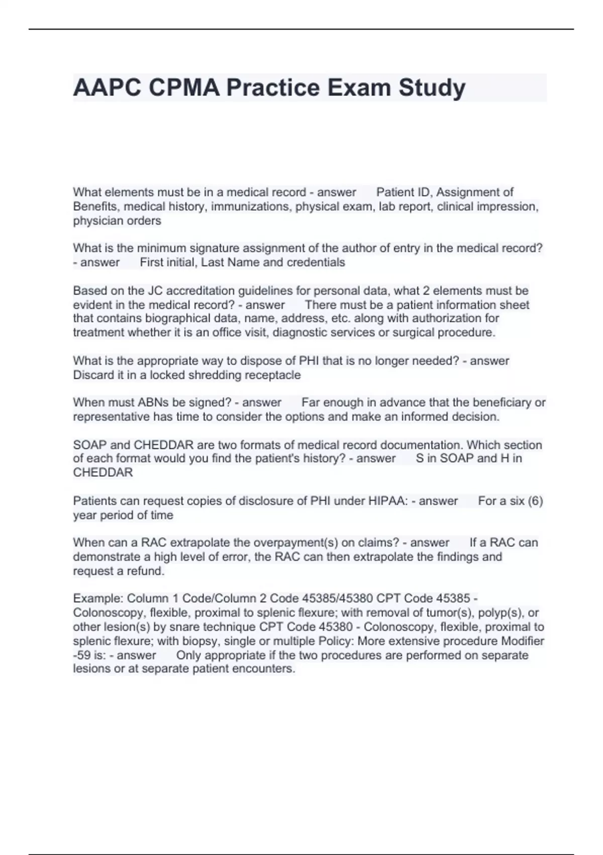 AAPC CPMA Practice Exam Study Questions and Answers 100% Accurate