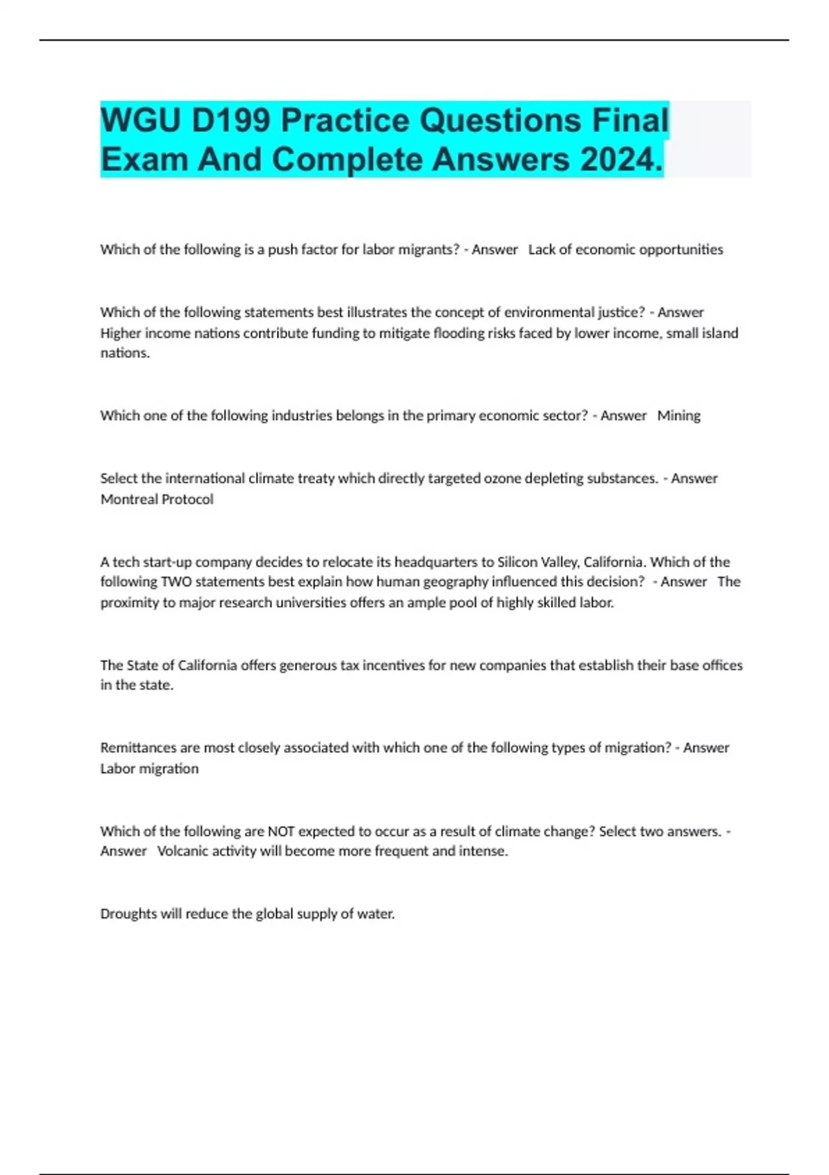 WGU D199 Practice Questions Final Exam And Complete Answers 2024.