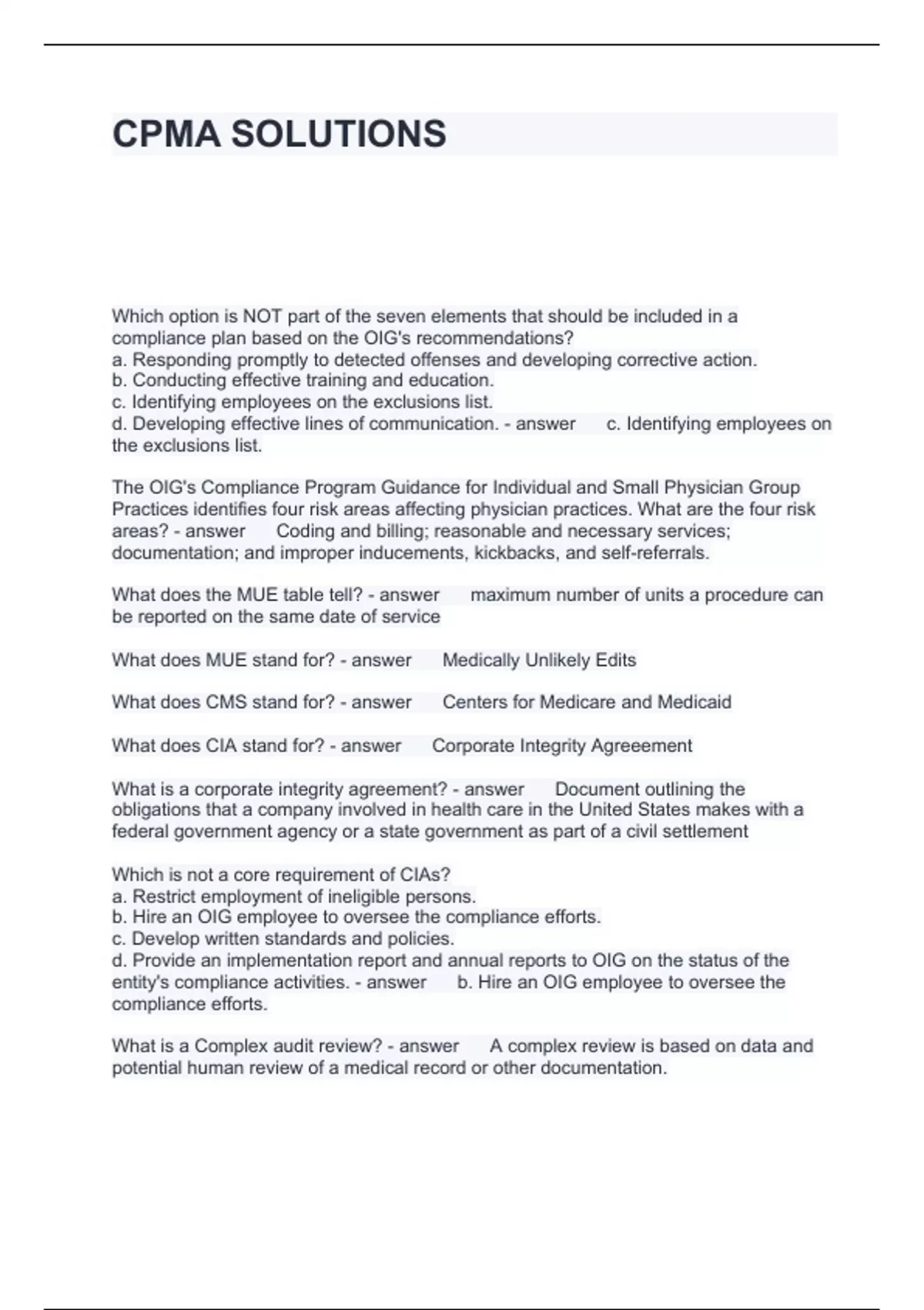 CPMA SOLUTIONS QUESTIONS AND ANSWERS 2024