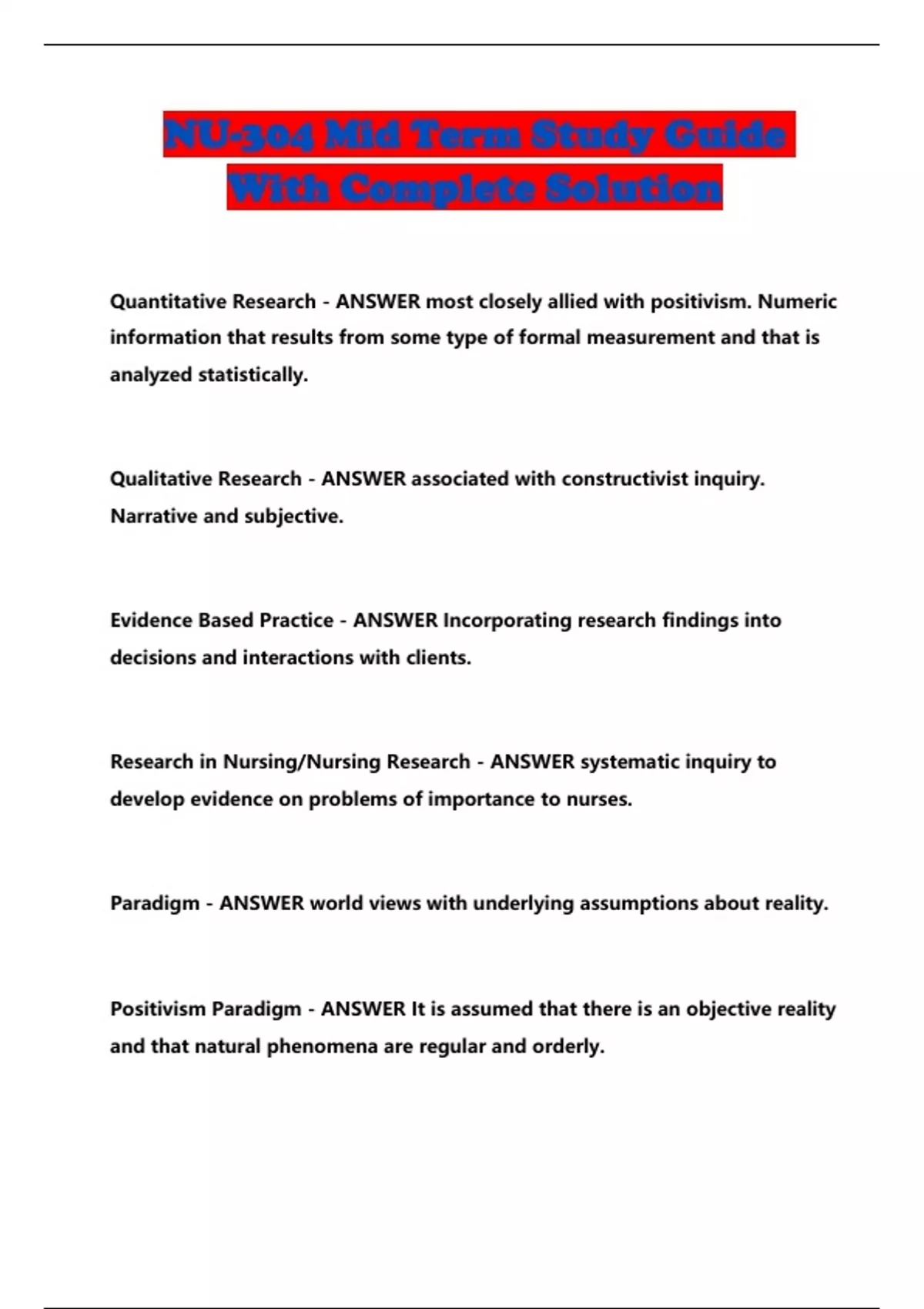 NU-304 Mid Term Study Guide With Complete Solution...